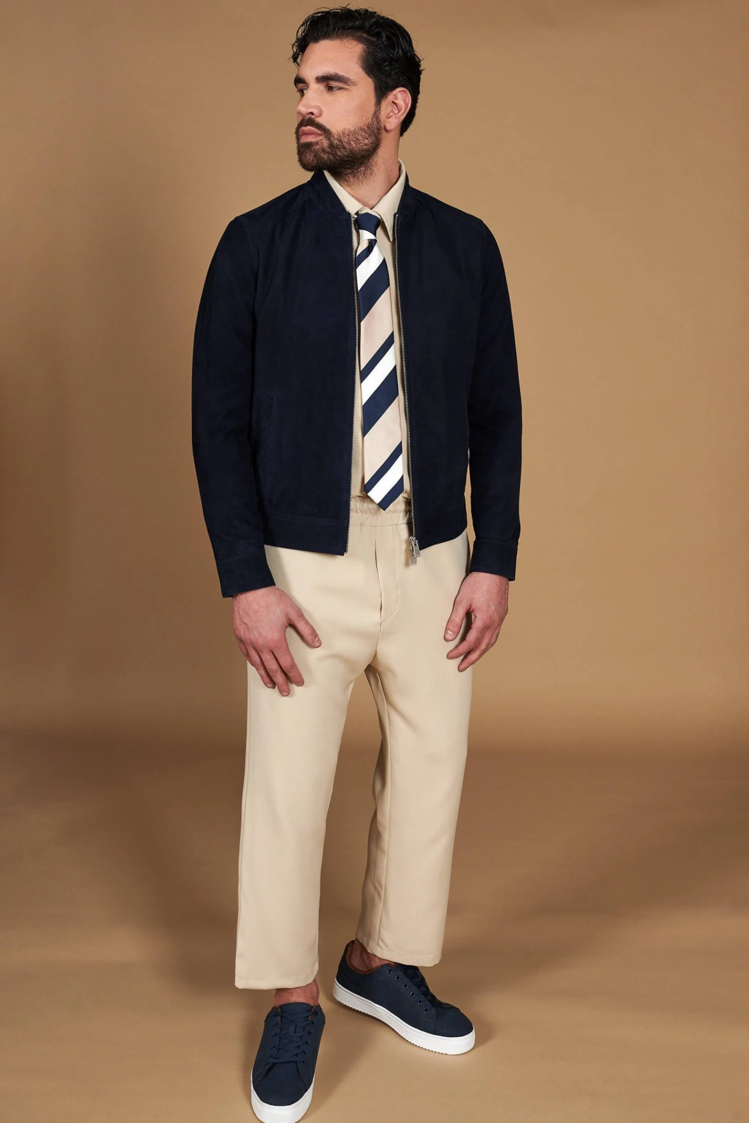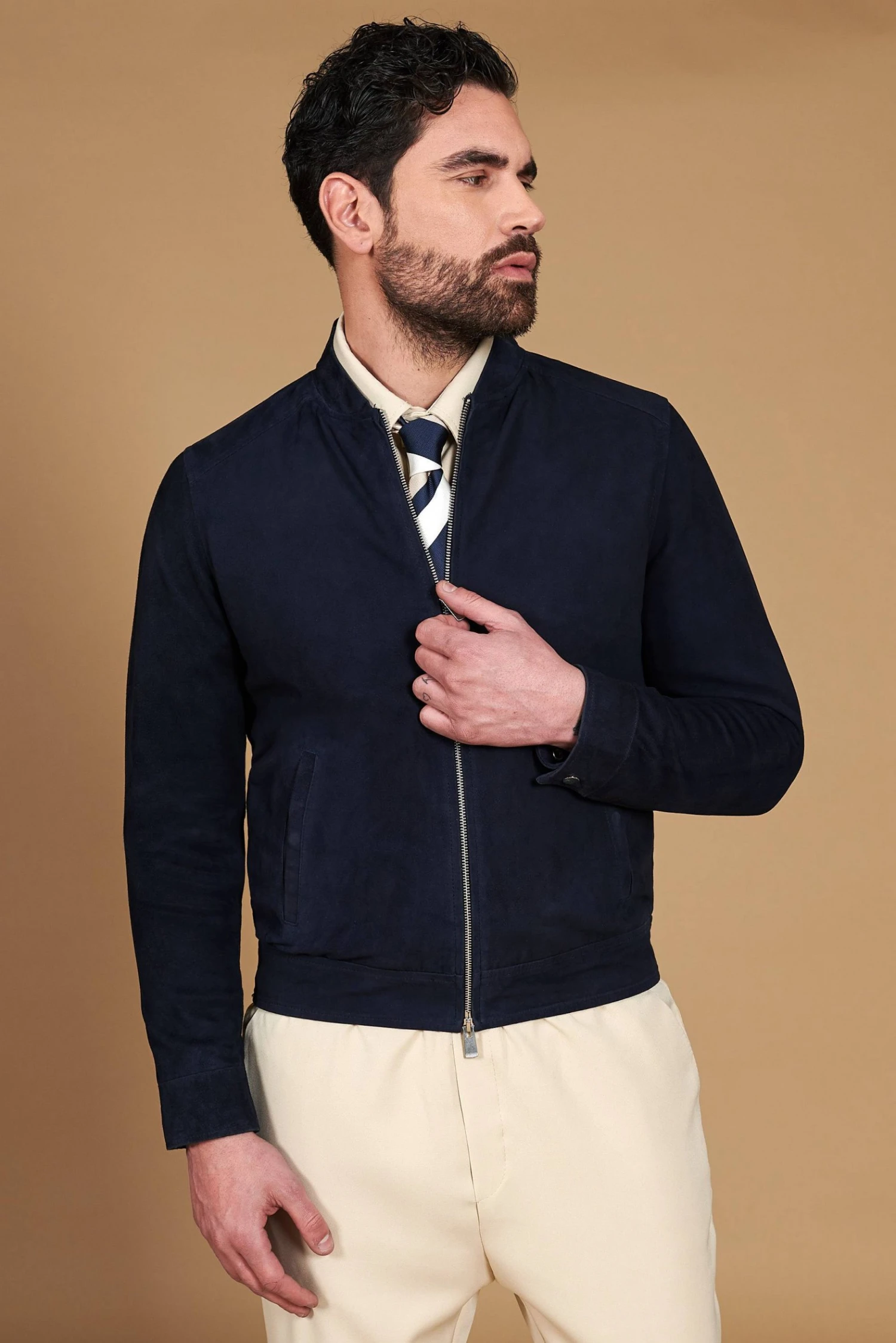 Blaue Lederjacke Wildleder Mit Reißverschluss
