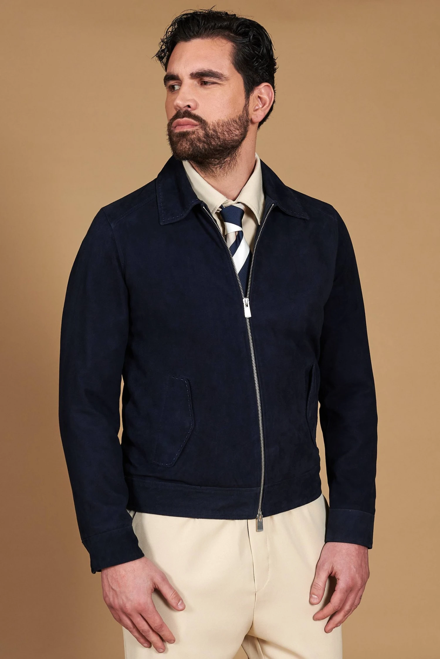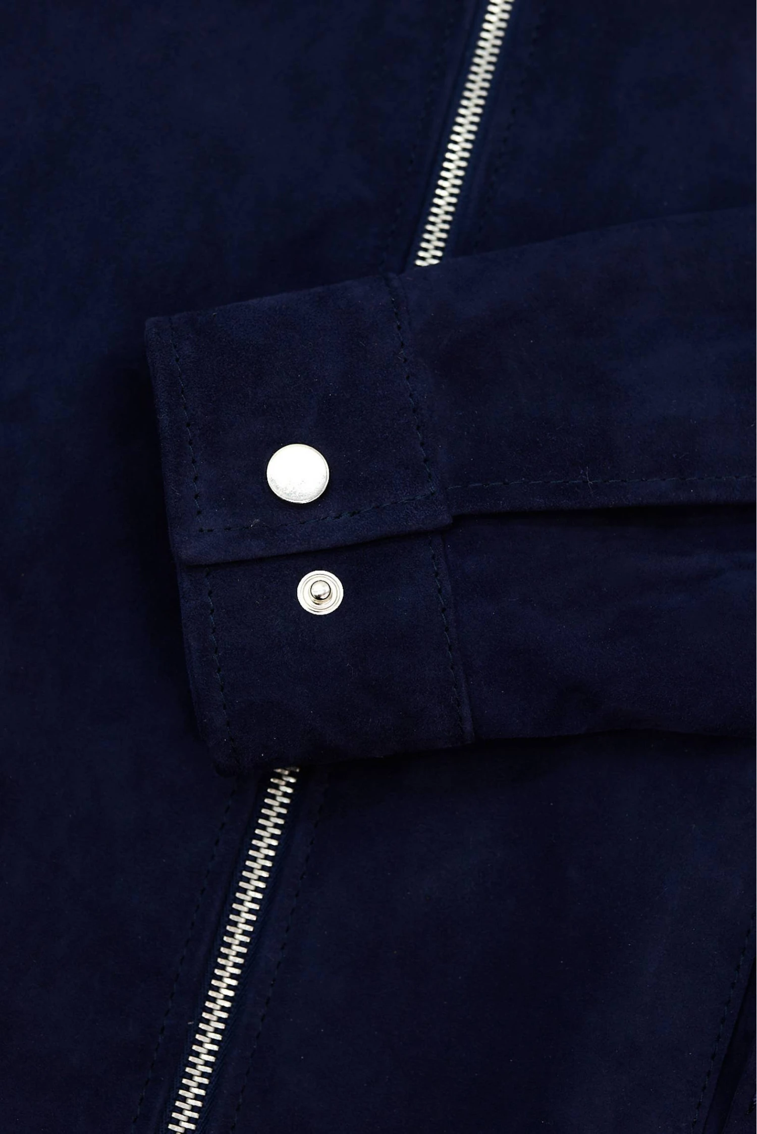 Das Owen-Modell ist die perfekte Verbindung aus modernem Design und Handwerkskunsttradition. Hergestellt aus hochwertigem Wildleder-Ziegenleder, zeichnet sich dieses Stück durch seine glatte Oberfläche und seine unglaublich weiche Textur aus. Der lineare Schnitt sorgt für eine saubere und elegante Ästhetik, während die von Hand gestickten Nähte am Hemdkragen und an den Taschenklappen einen Hauch von Handwerkskunst und Raffinesse verleihen.