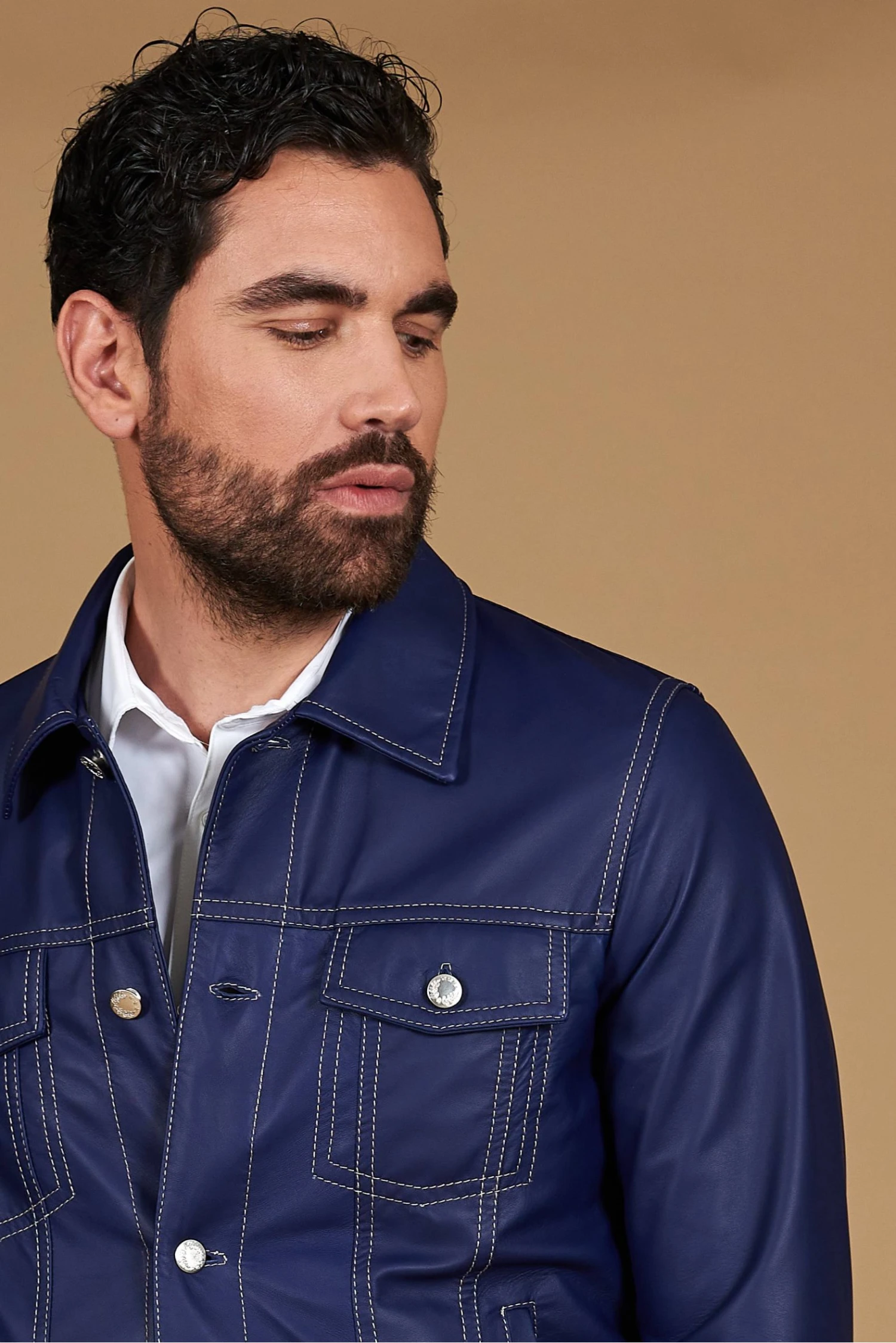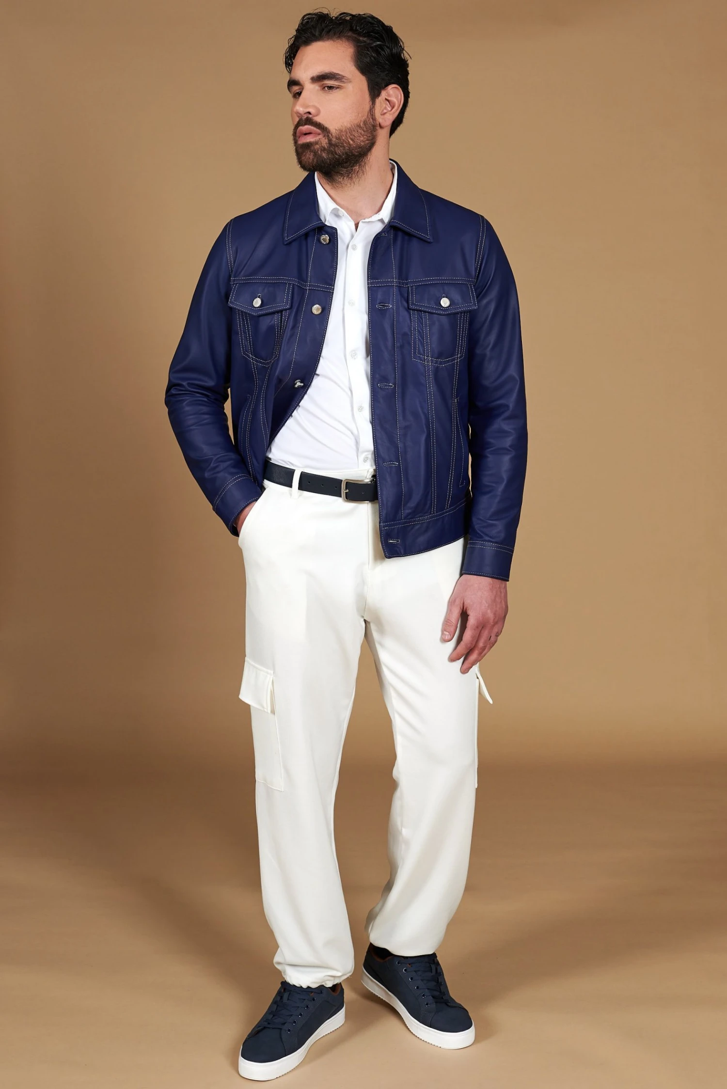 Das vorgeschlagene Modell ‚Akyo Jacke‘ aus 100% echtem Leder besteht aus: