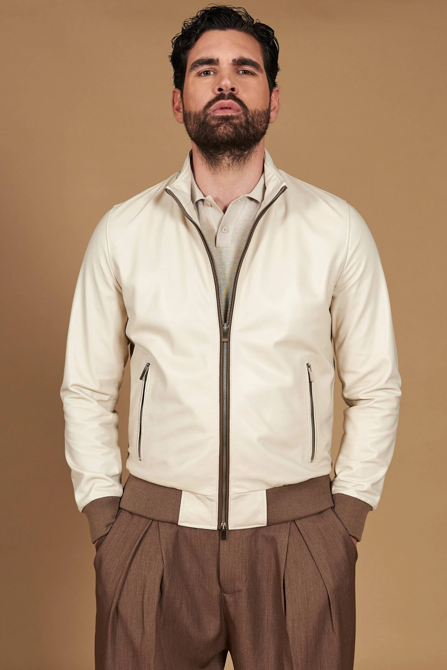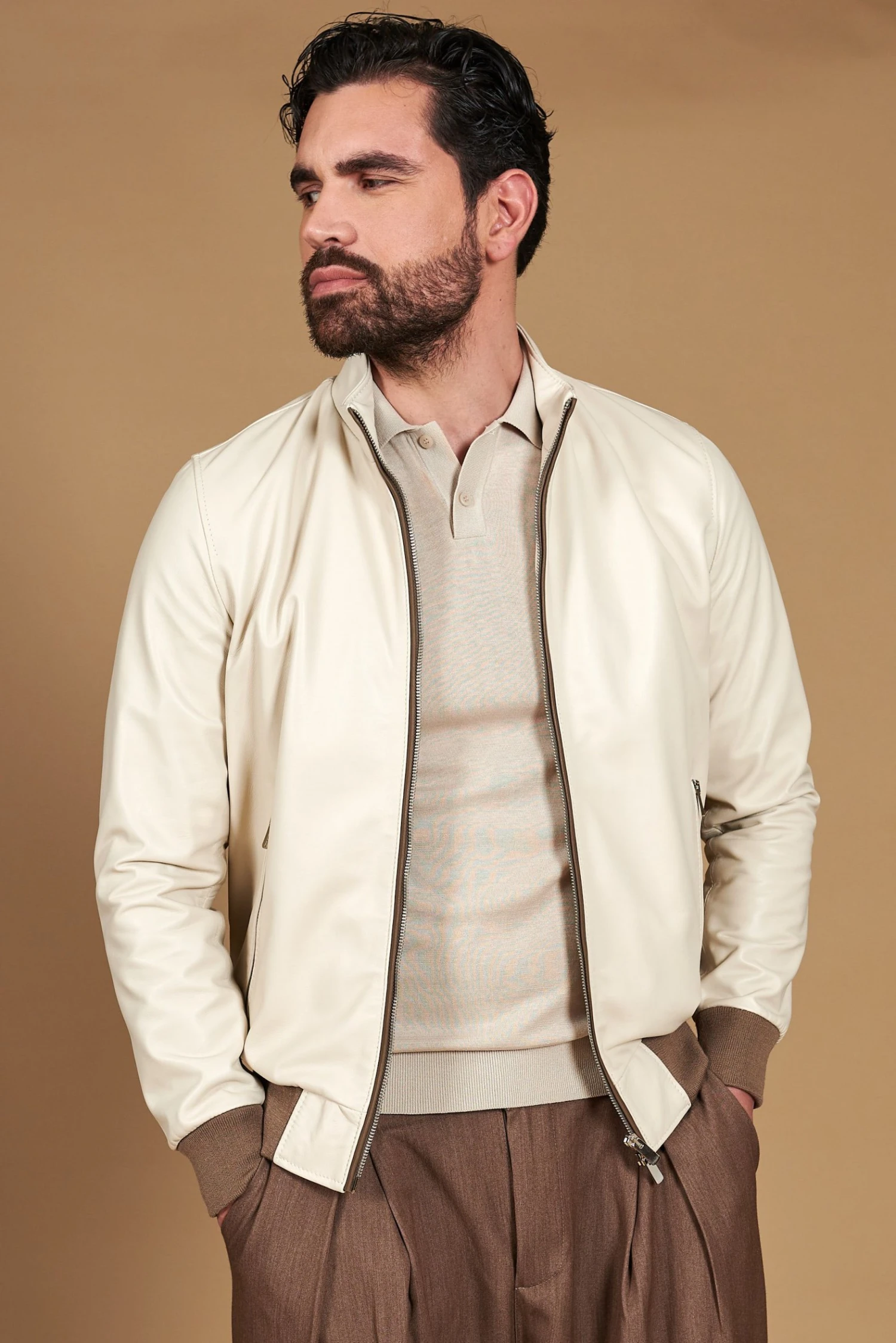 Handgemachte Herrenjacke aus 100% Lammleder, mit ausgewählten Materialien und 100% Made in Italy.