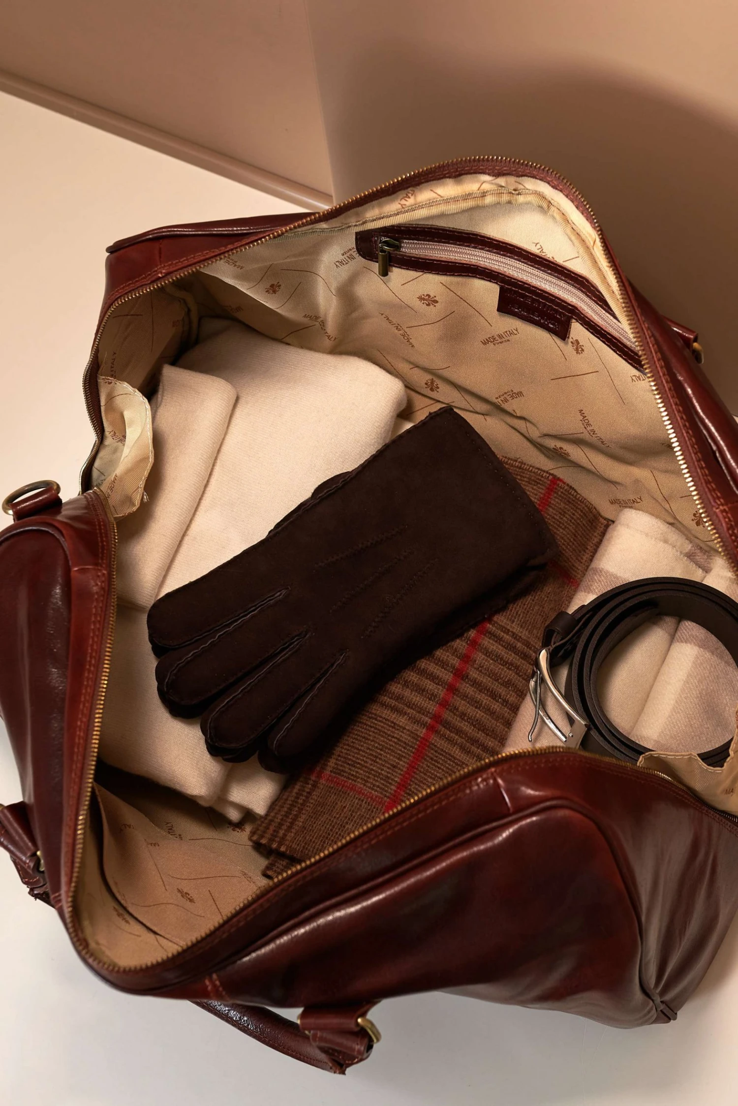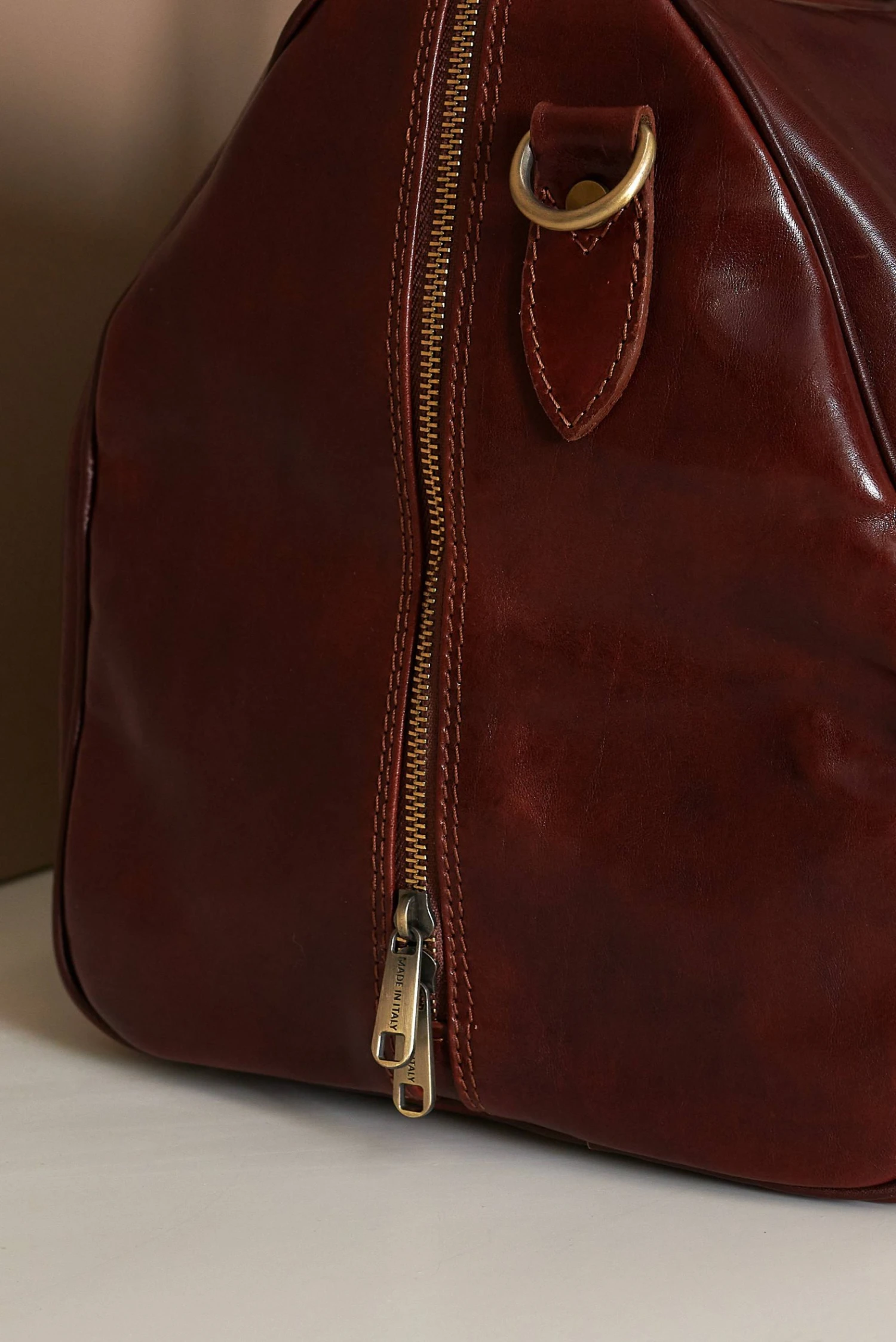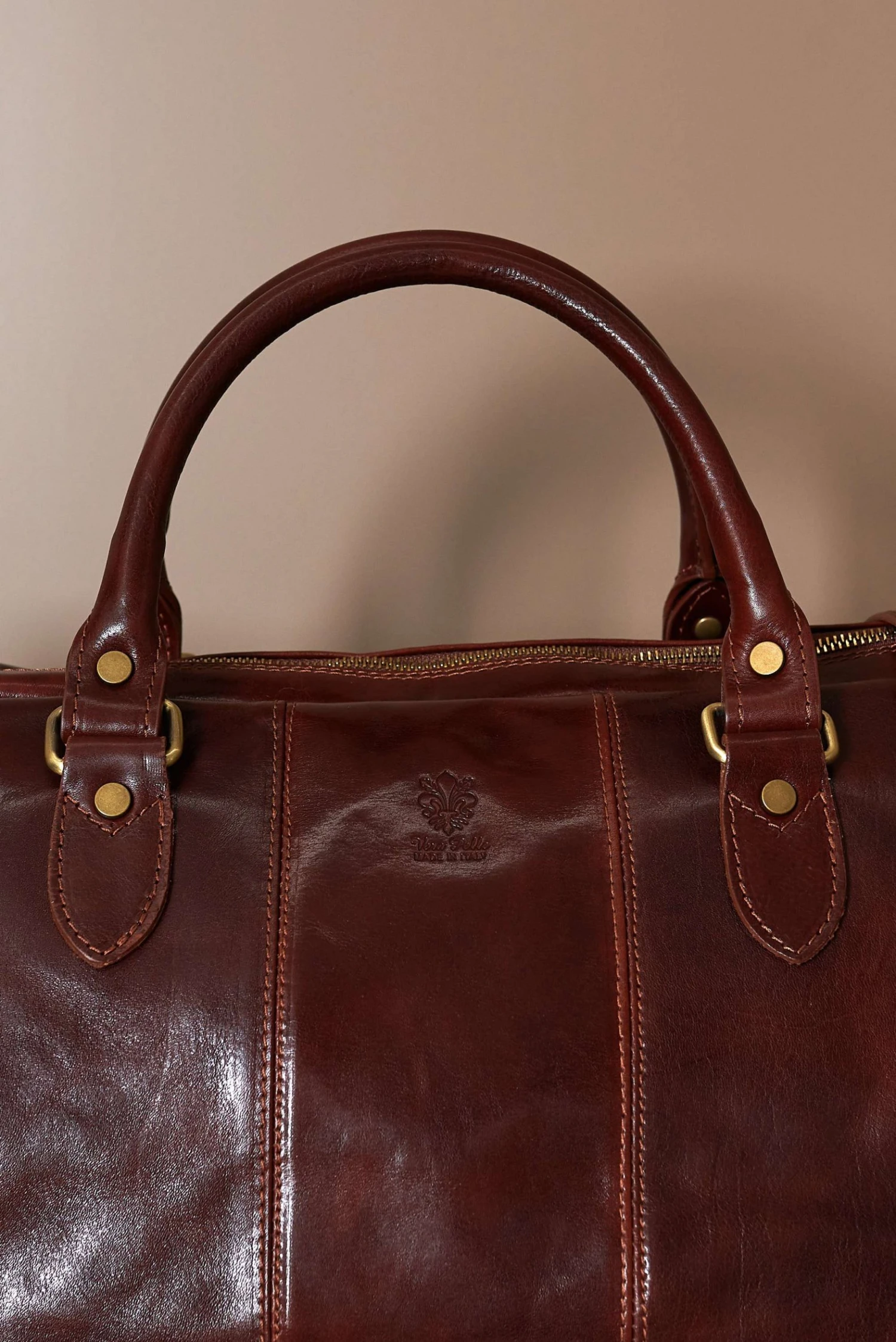 Reisetasche aus Leder, handgepuffertes pflanzlich gegerbtes Kalbsleder, 100% Kalbsleder und 100% Made in Italy