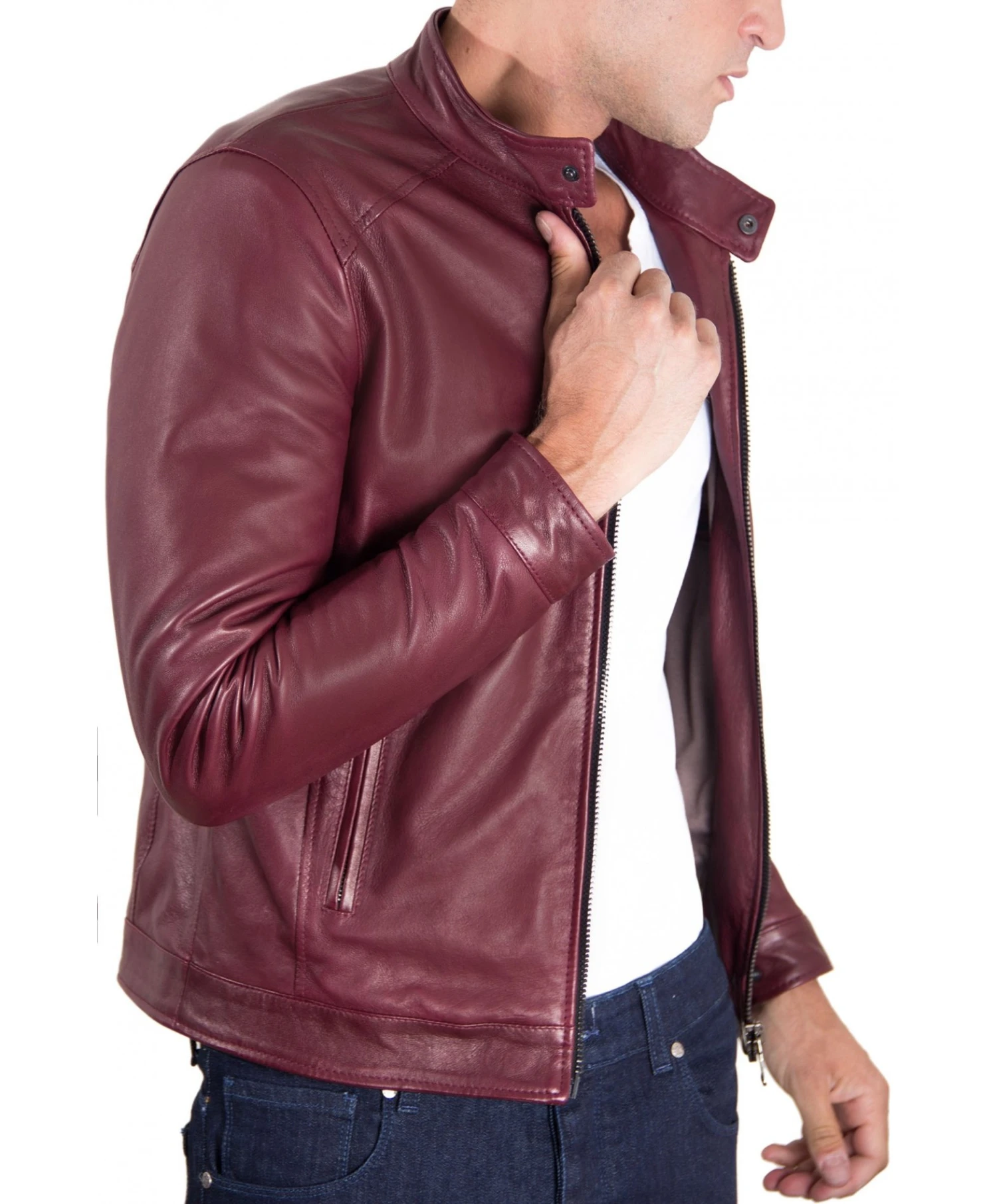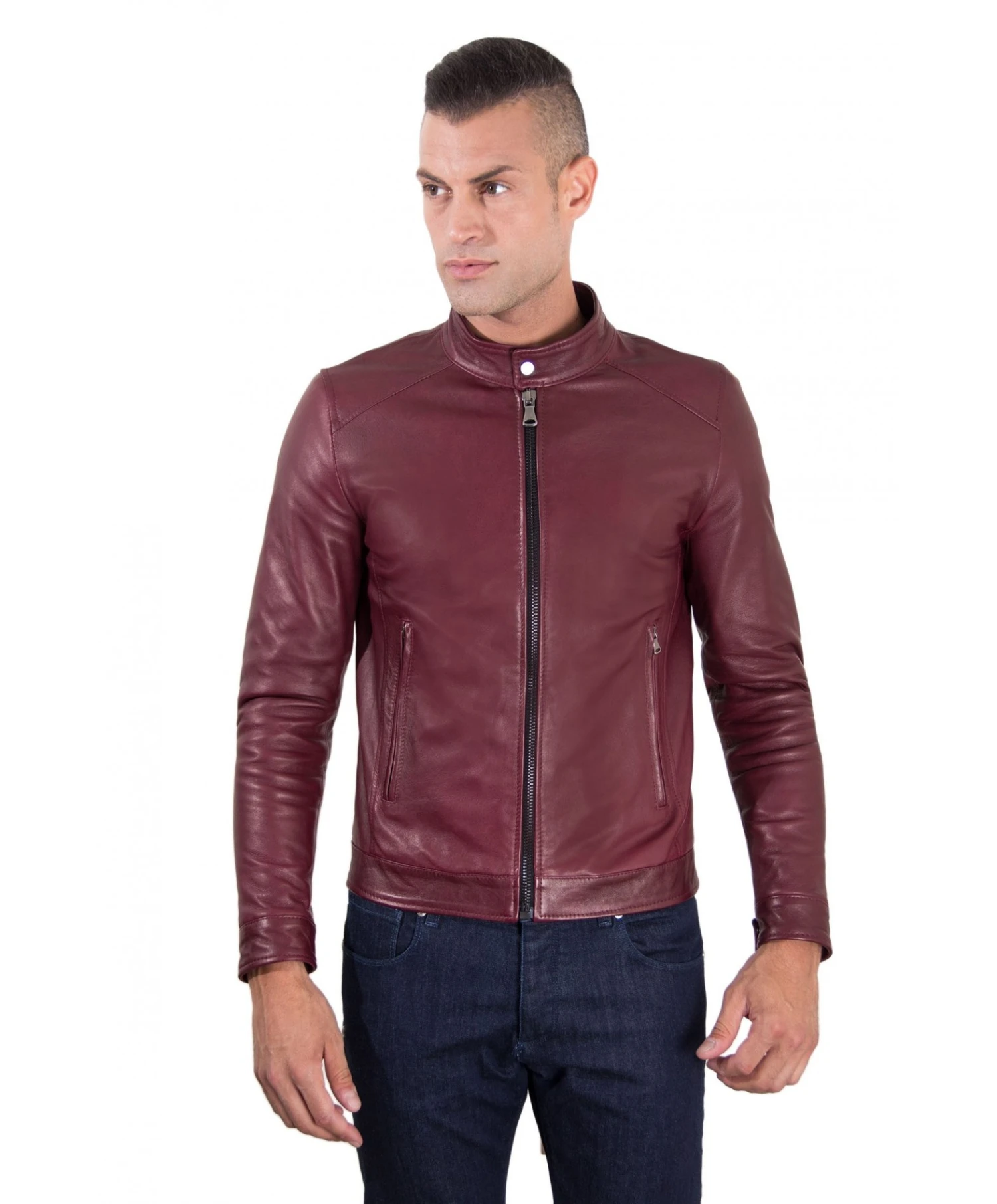 Handgemachte Herrenjacke aus 100% Lammleder, mit ausgewählten Materialien und 100% Made in Italy.