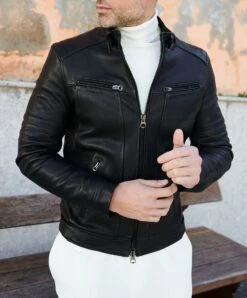 Handgemachte Herrenjacke aus Leder, 100% Ziegenleder und 100% ausgewählten Materialien.