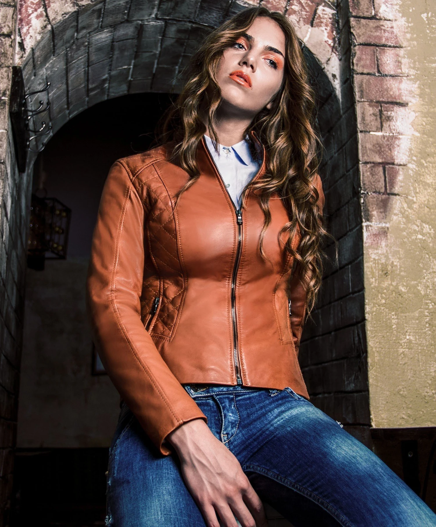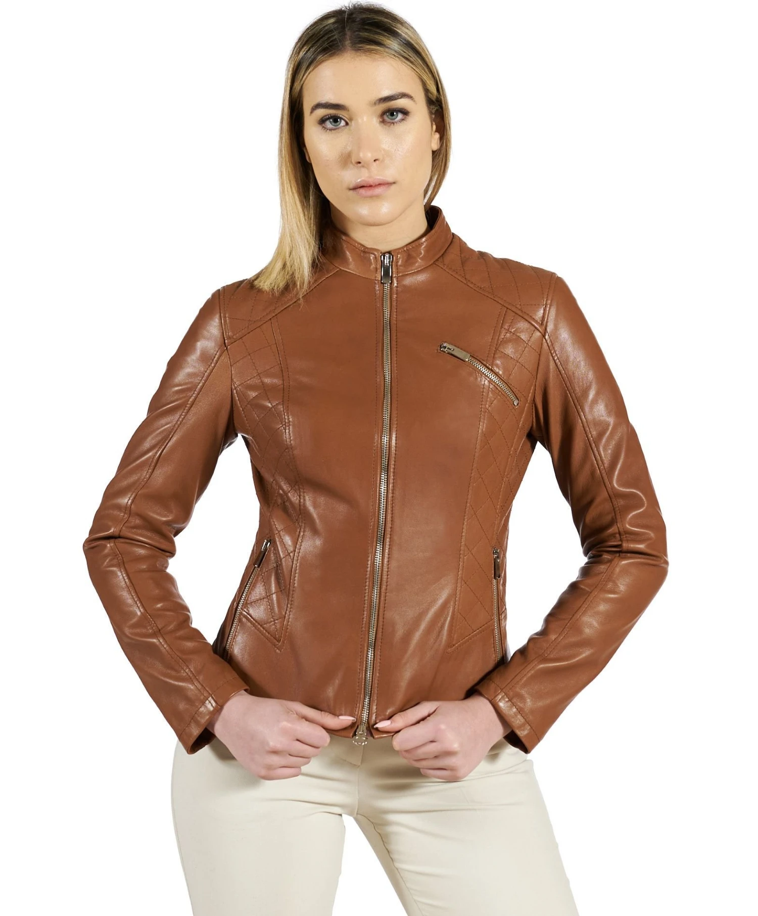 Handgemachte Damenjacke aus 100% Lammleder, mit ausgewählten Materialien und 100% Made in Italy.