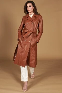 Lederfarben Zweireihiger Natur-ledermantel Mit Seitenschlitze
