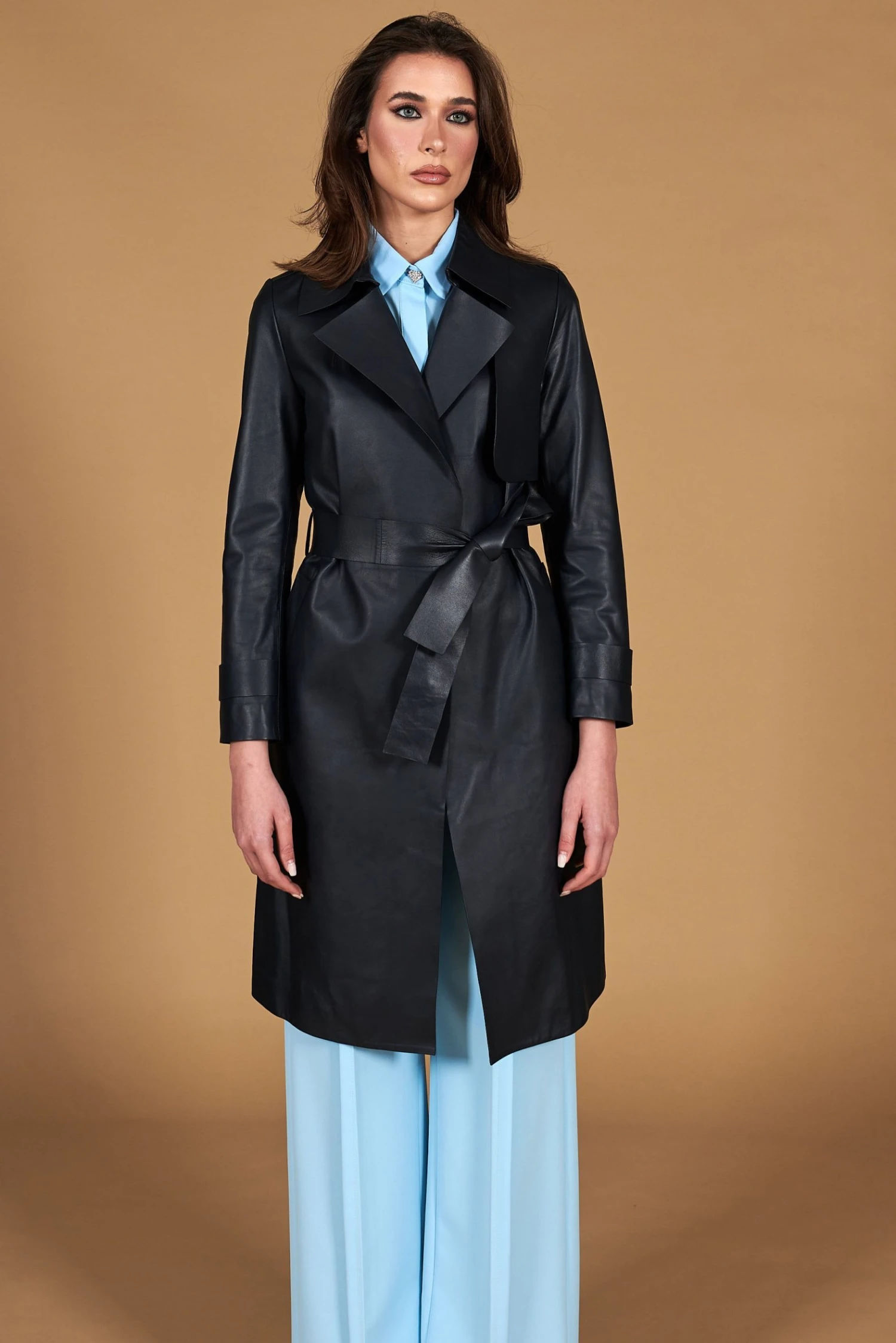 Das vorgeschlagene Modell ‚Coat Sienna‘ aus 100% echtem Nappaleder besteht aus: