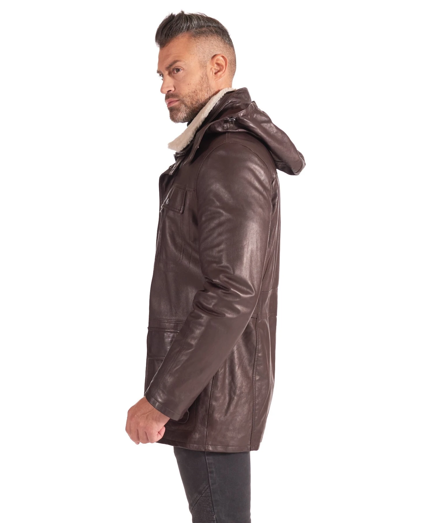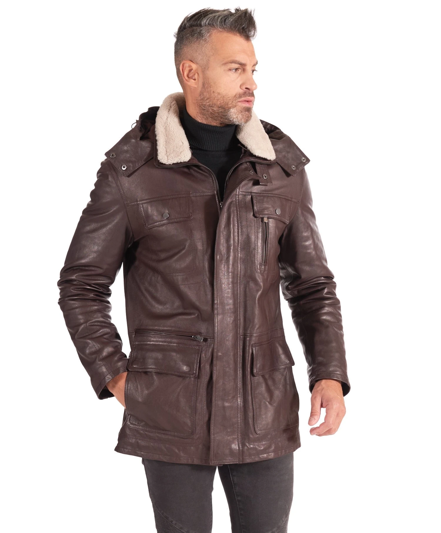 Handgefertigter Herrenmantel aus 100% Lammleder, mit ausgewählten Materialien und 100% Made in Italy.