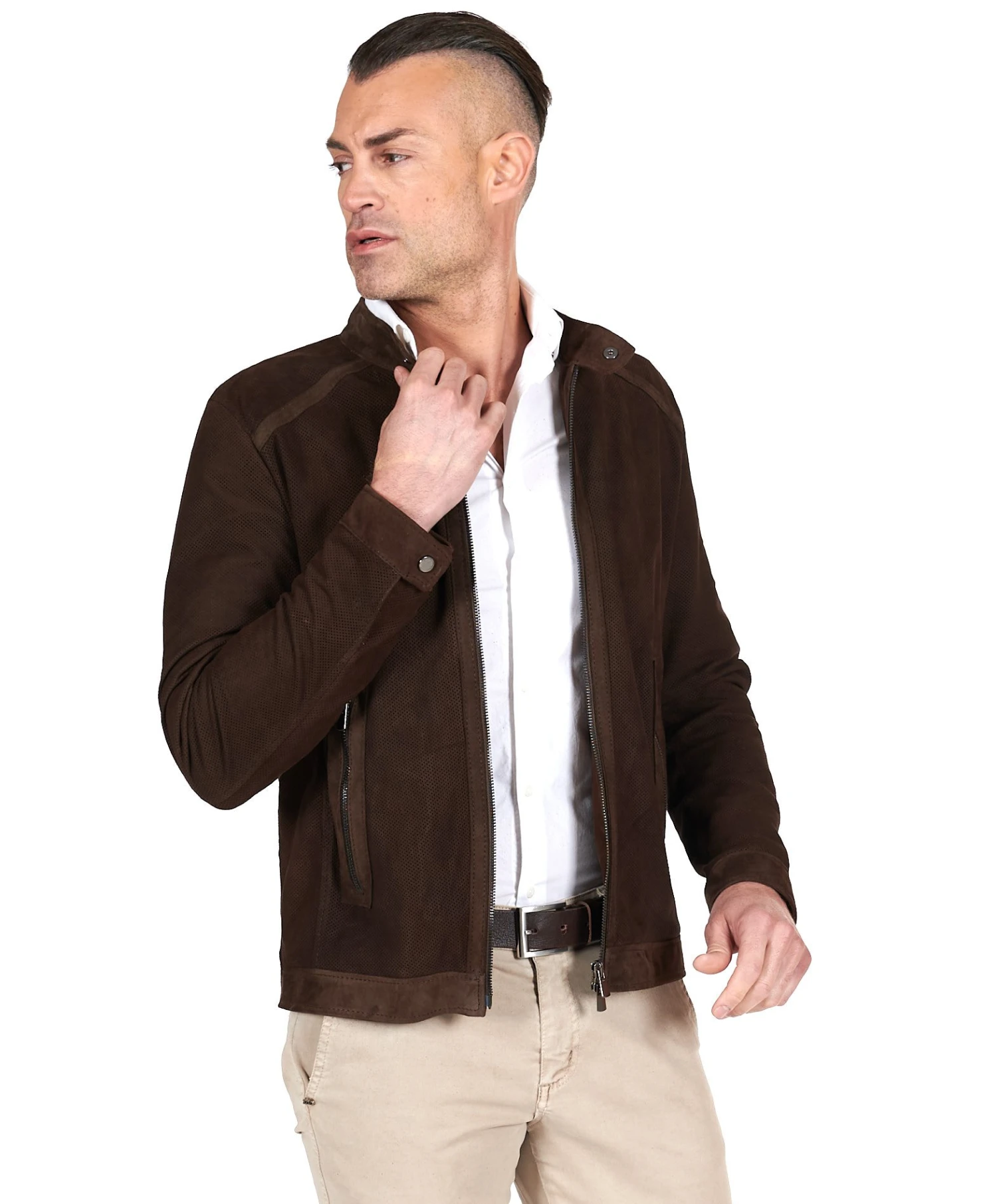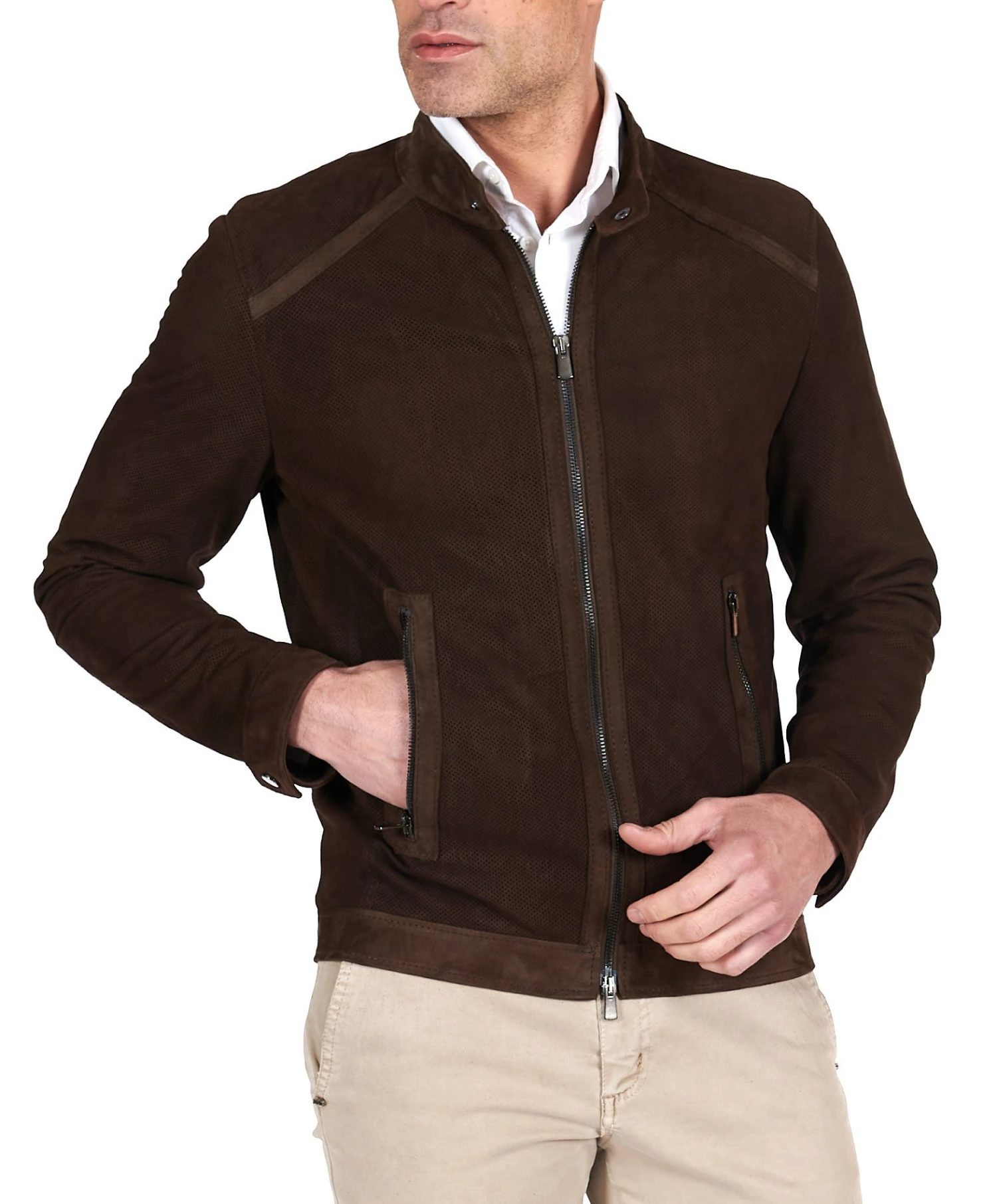 echte Lederjacke herren, Lammleder perforierteswildleder glatter effekt, dunkelbraune Farbe