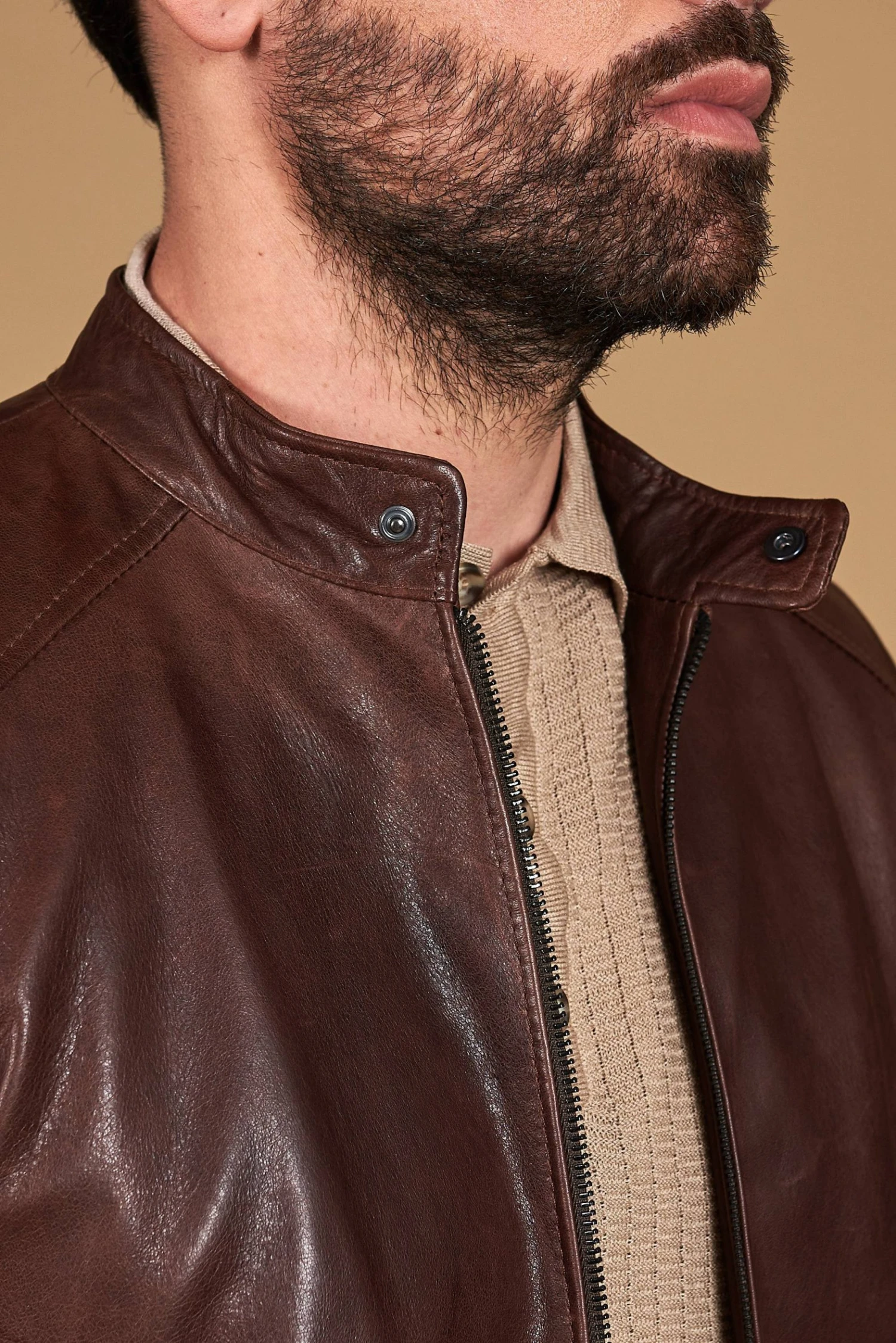 Handgemachte Herrenjacke aus Leder, 100% Lammleder, mit ausgewählten Materialien und 100% Made in Italy.