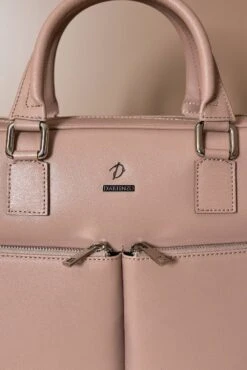 Beige Laptop Aktentasche Aus Leder Fronttasche Reißverschluss
