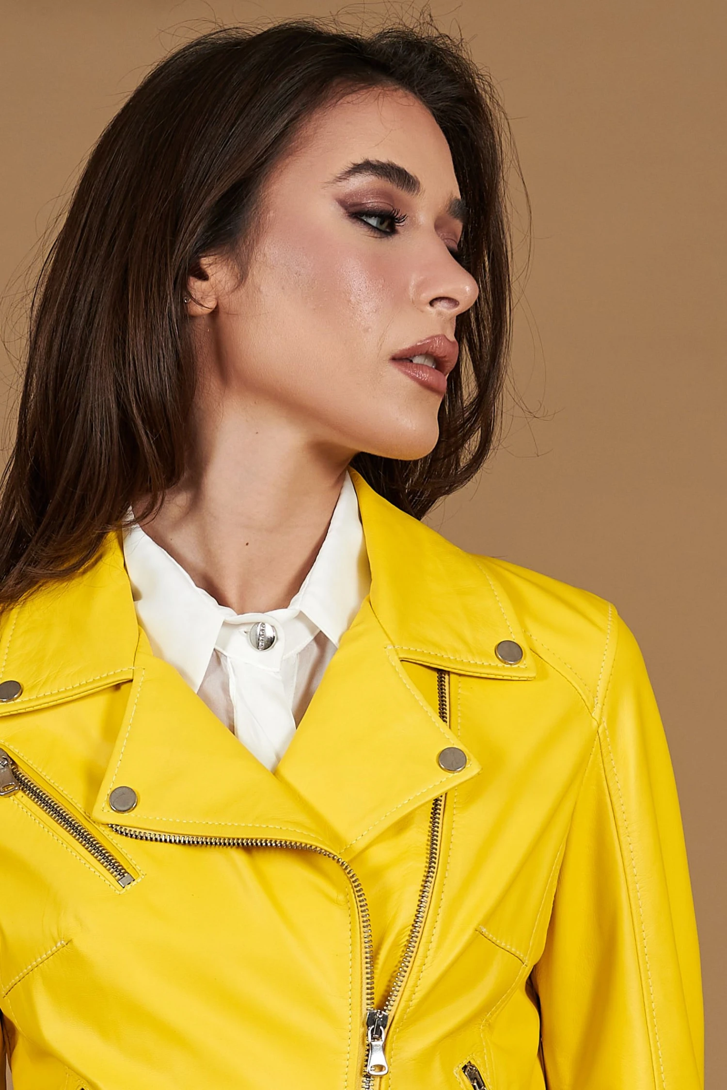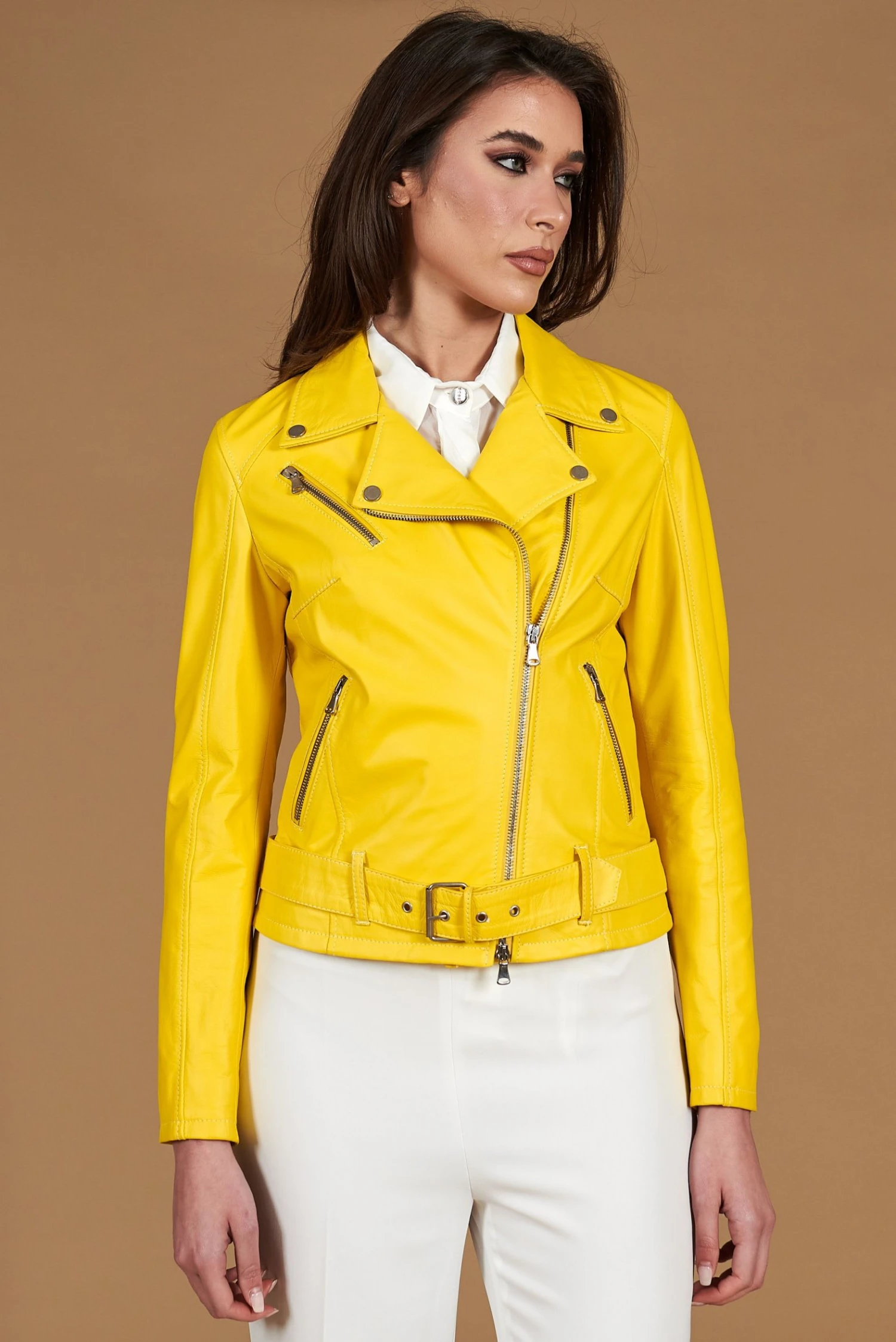 Handgemachte Damenjacke aus Leder, 100% Lammleder, mit ausgewählten Materialien und 100% Made in Italy.