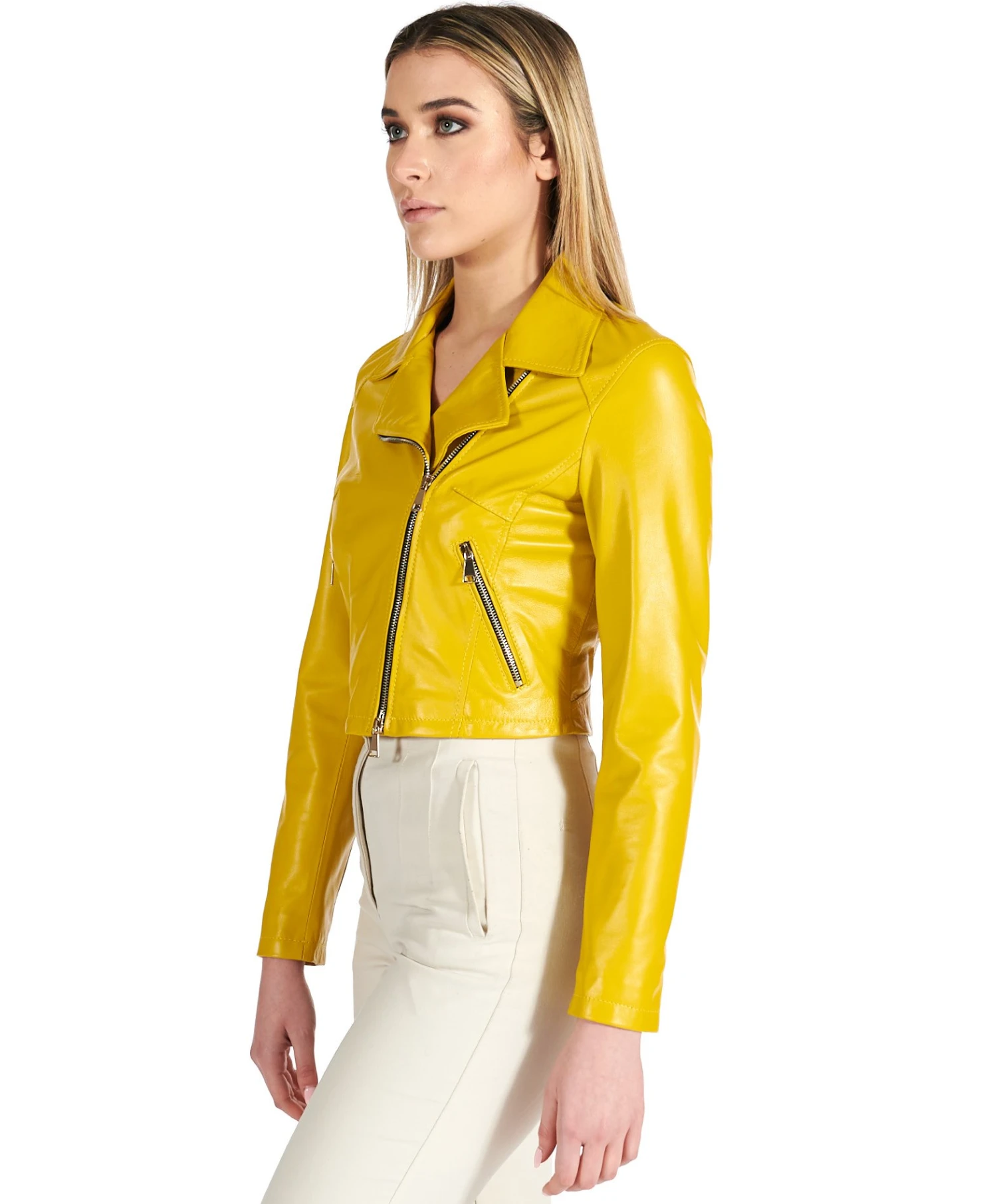 Kurze Damenjacke aus 100% Lammleder, mit ausgewählten Materialien und 100% Made in Italy.