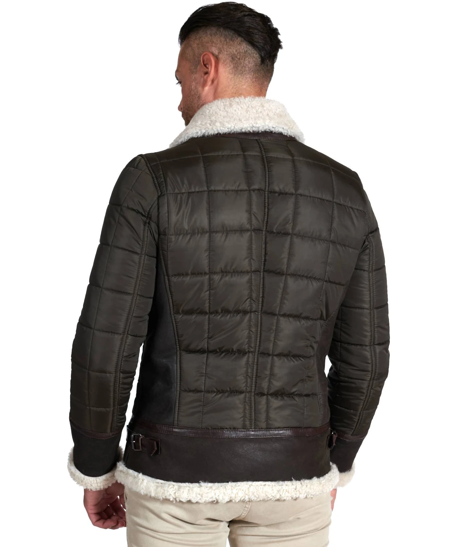 Herren Daunenjacke aus Leder und Stoff, Lammfell Schaffell, mit ausgewählten Materialien und 100% Made in Italy.
