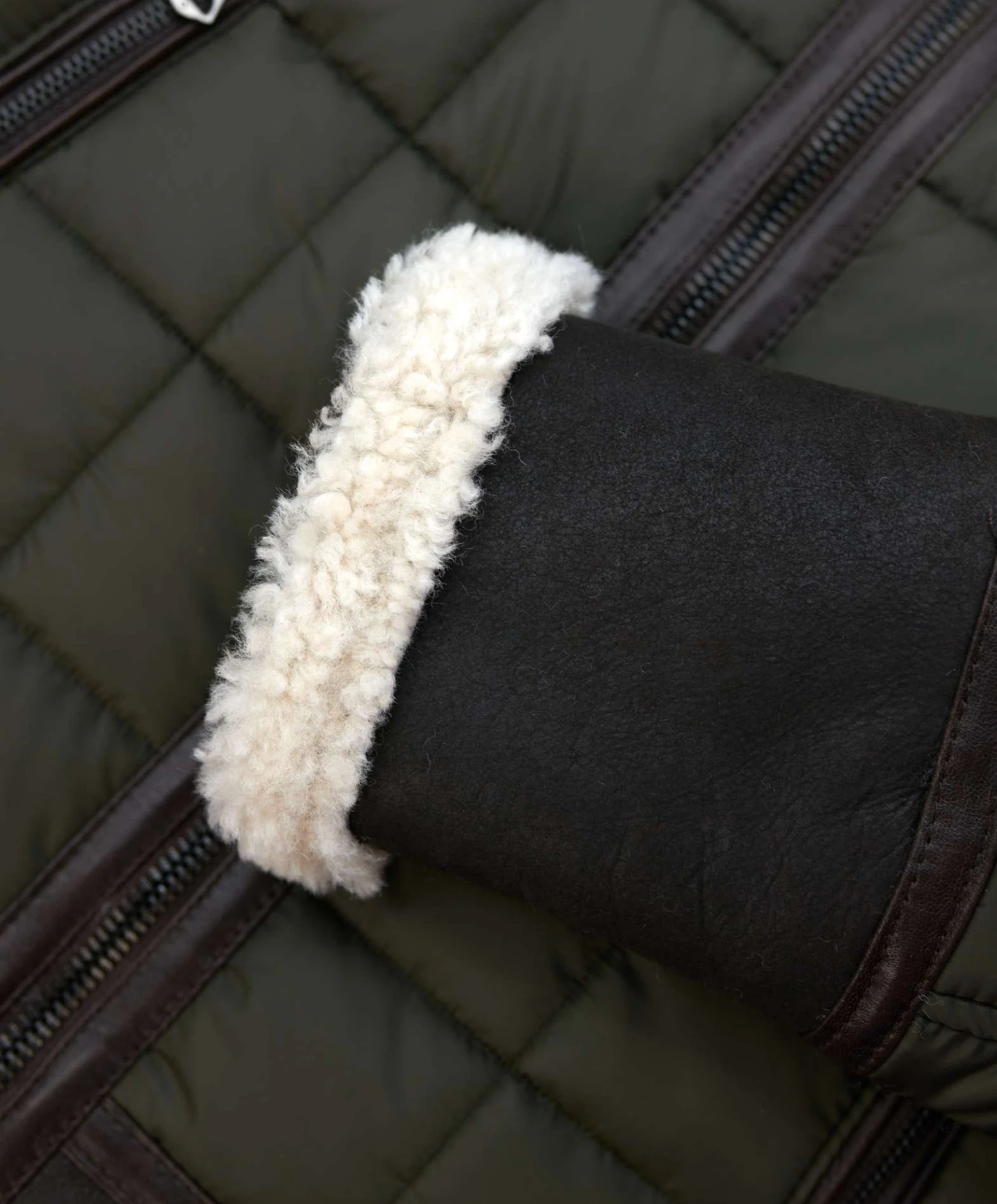 - Bündchen und Boden aus Schaffell;