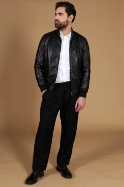 Schwarze Bomberjacke Aus Perforiertem Leder Mit Passendem Elastisch Band
