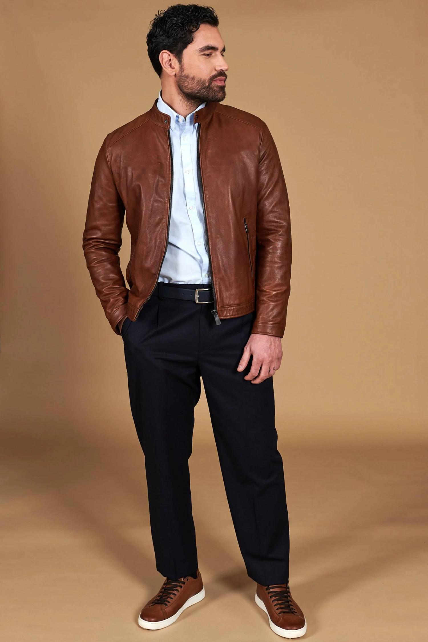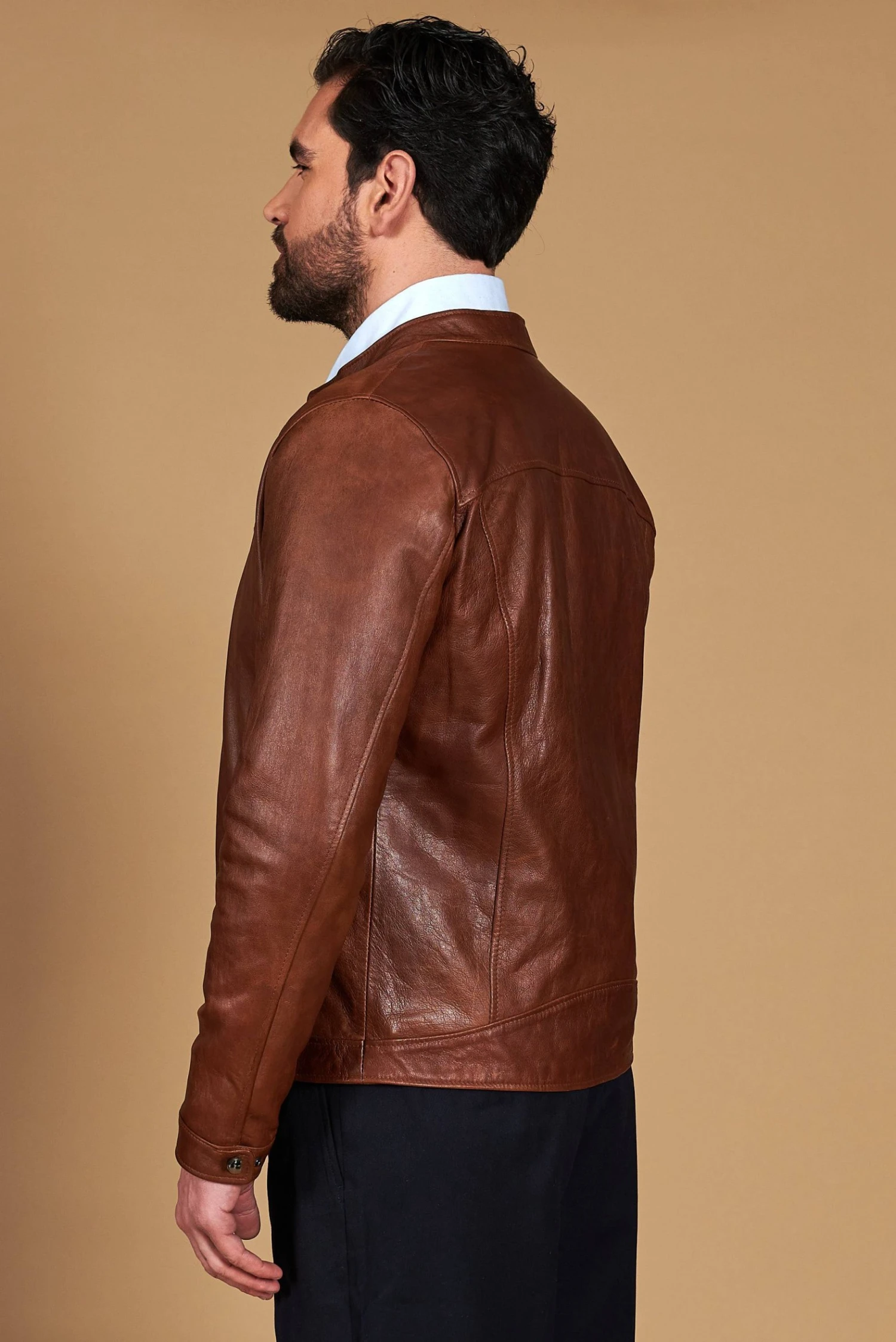 Handgemachte Herrenjacke aus Leder, 100% Lammfell, mit ausgewählten Materialien und 100% Made in Italy.