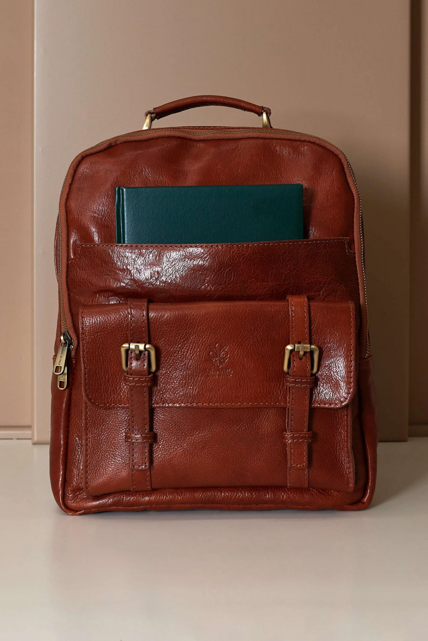 Unisex-Lederrucksack, handgepuffertes pflanzlich gegerbtes, 100% Kalbsleder, mit ausgewählten Materialien und 100% Made in Italy.