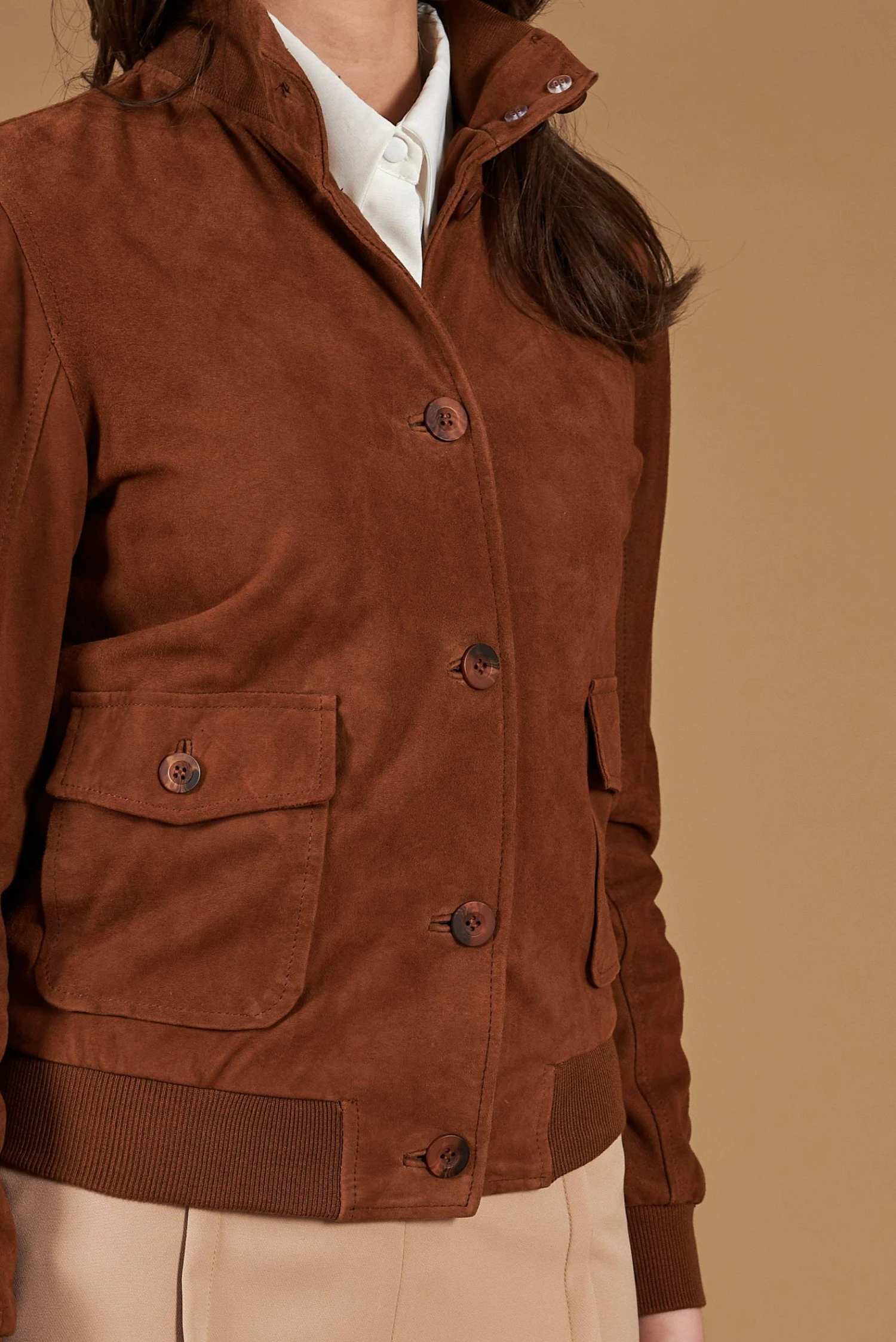 Das vorgeschlagene Modell ‚Jacket Modell Faty‘ aus echtem leder besteht aus: