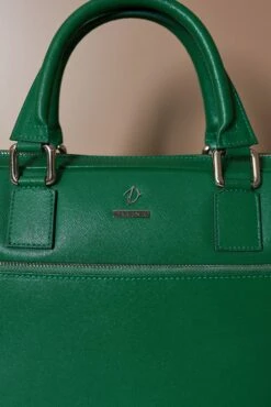 Hellgrüne Laptop Aktentasche Aus Leder Fronttasche Reißverschluss
