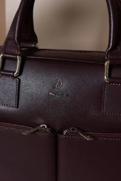 Burgunder Laptop Aktentasche Aus Leder Fronttasche Reißverschluss