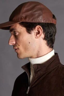 Braune Trilby Lederhut Herren Aus Nappaleder Schmales Visier