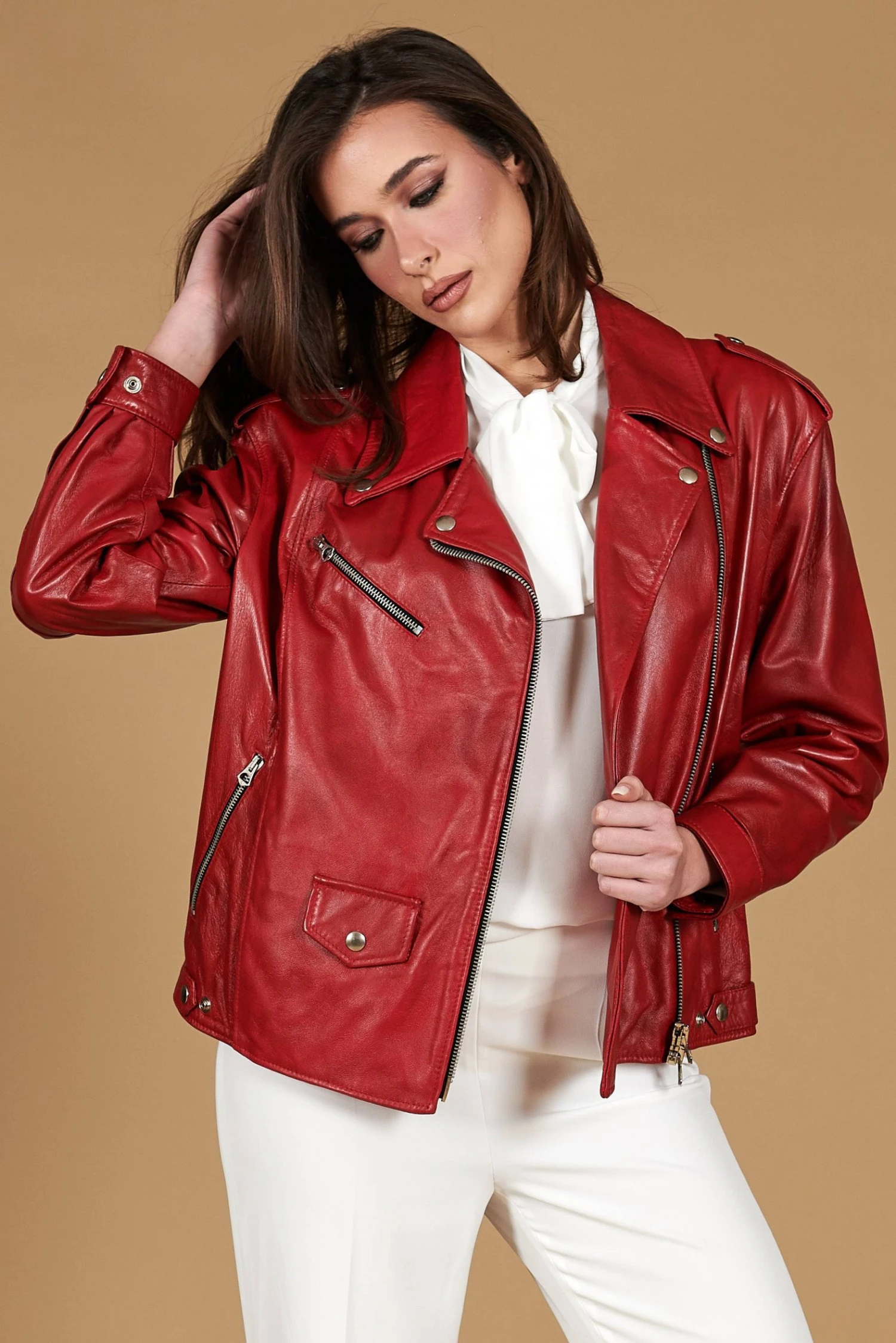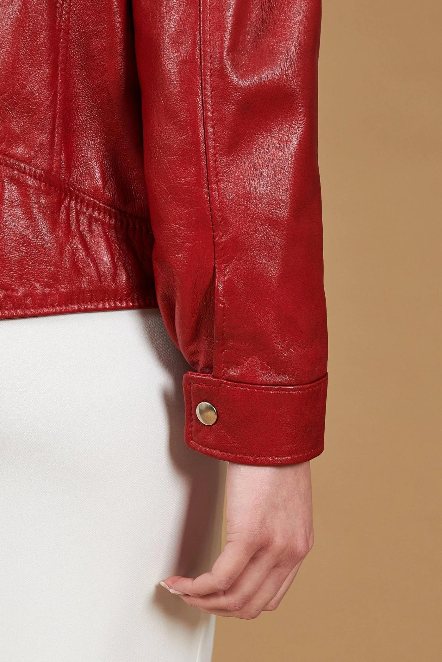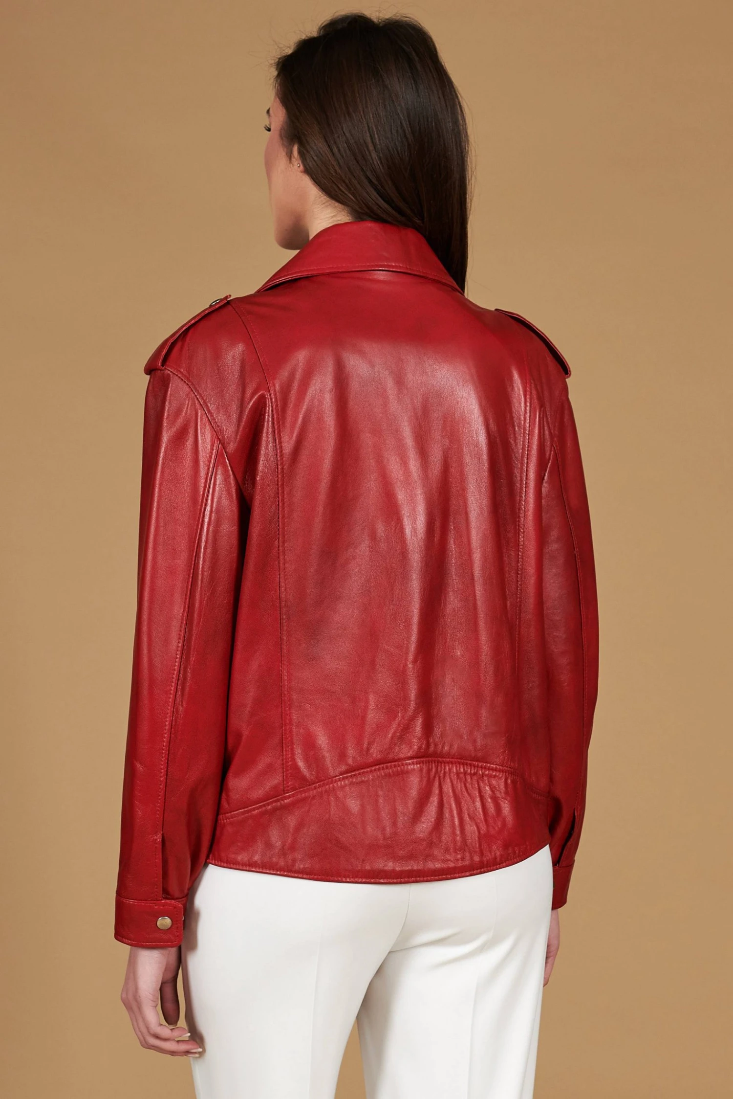 Handgemachte Damenjacke aus 100% Lammleder mit ausgewählten Materialien und 100% Made in Italy.