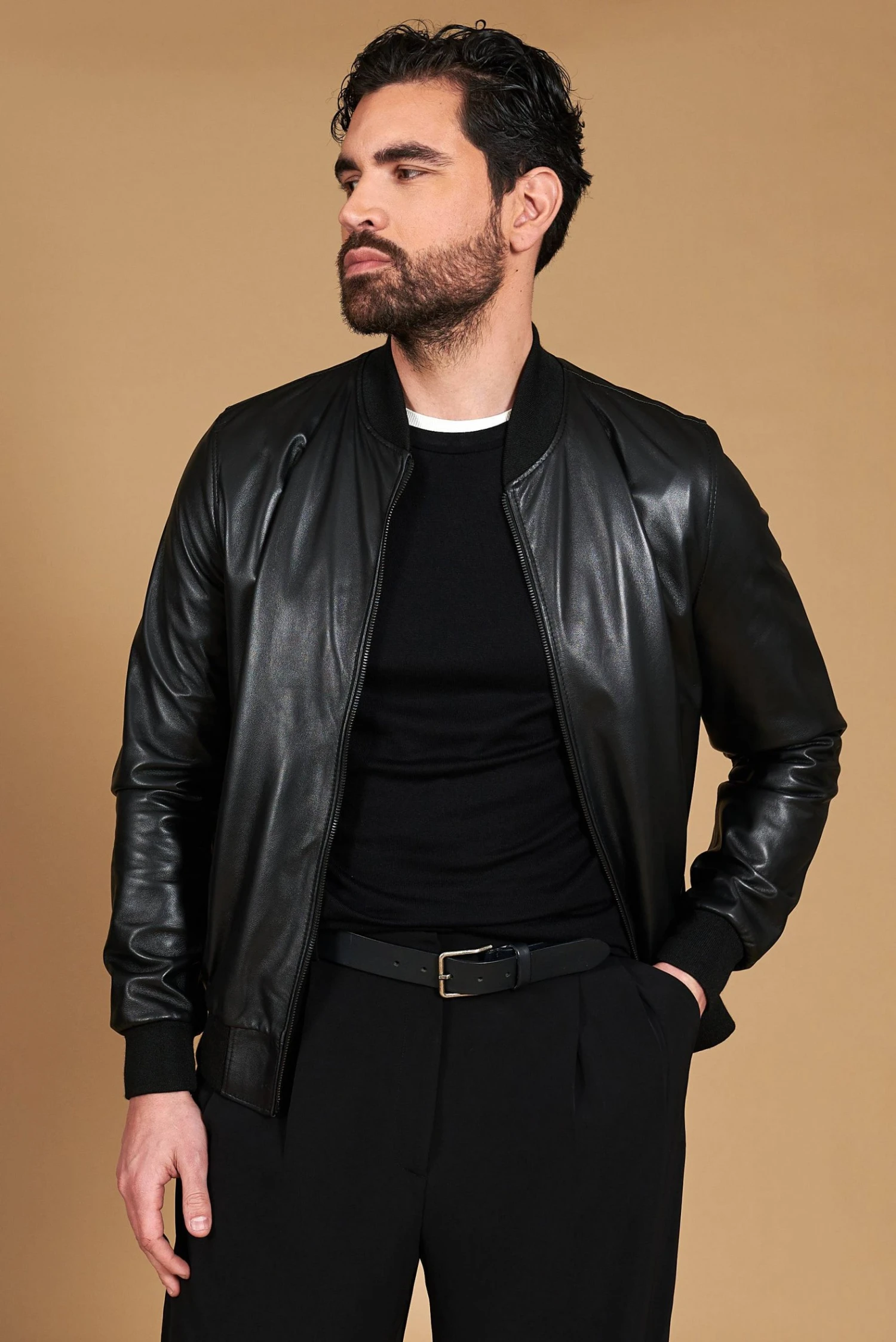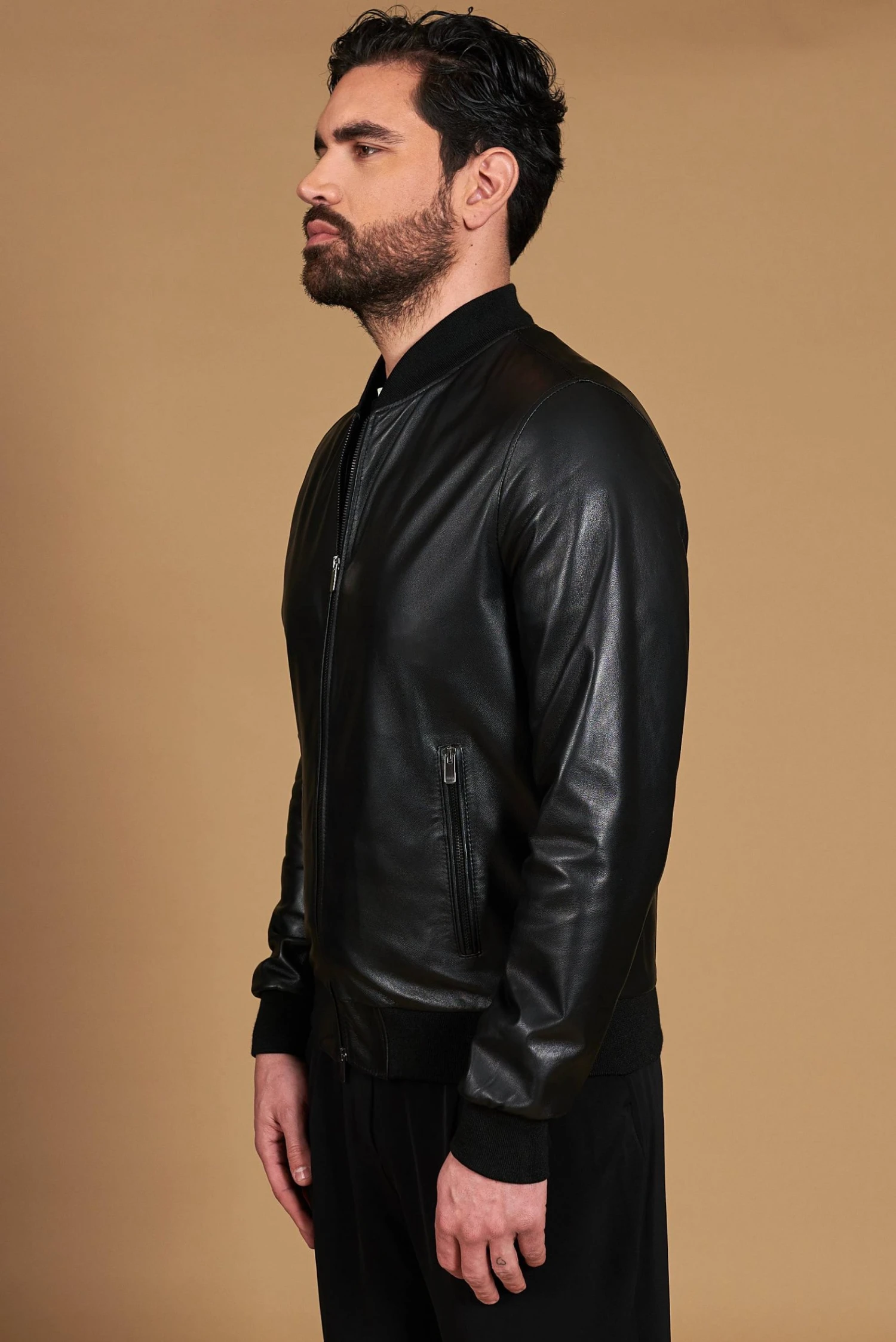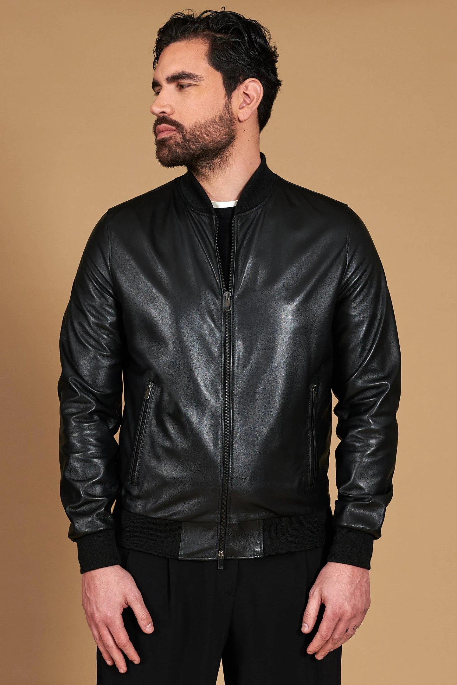 Handgemachte Herrenjacke aus 100% Lammleder, 100% Made in Italy.