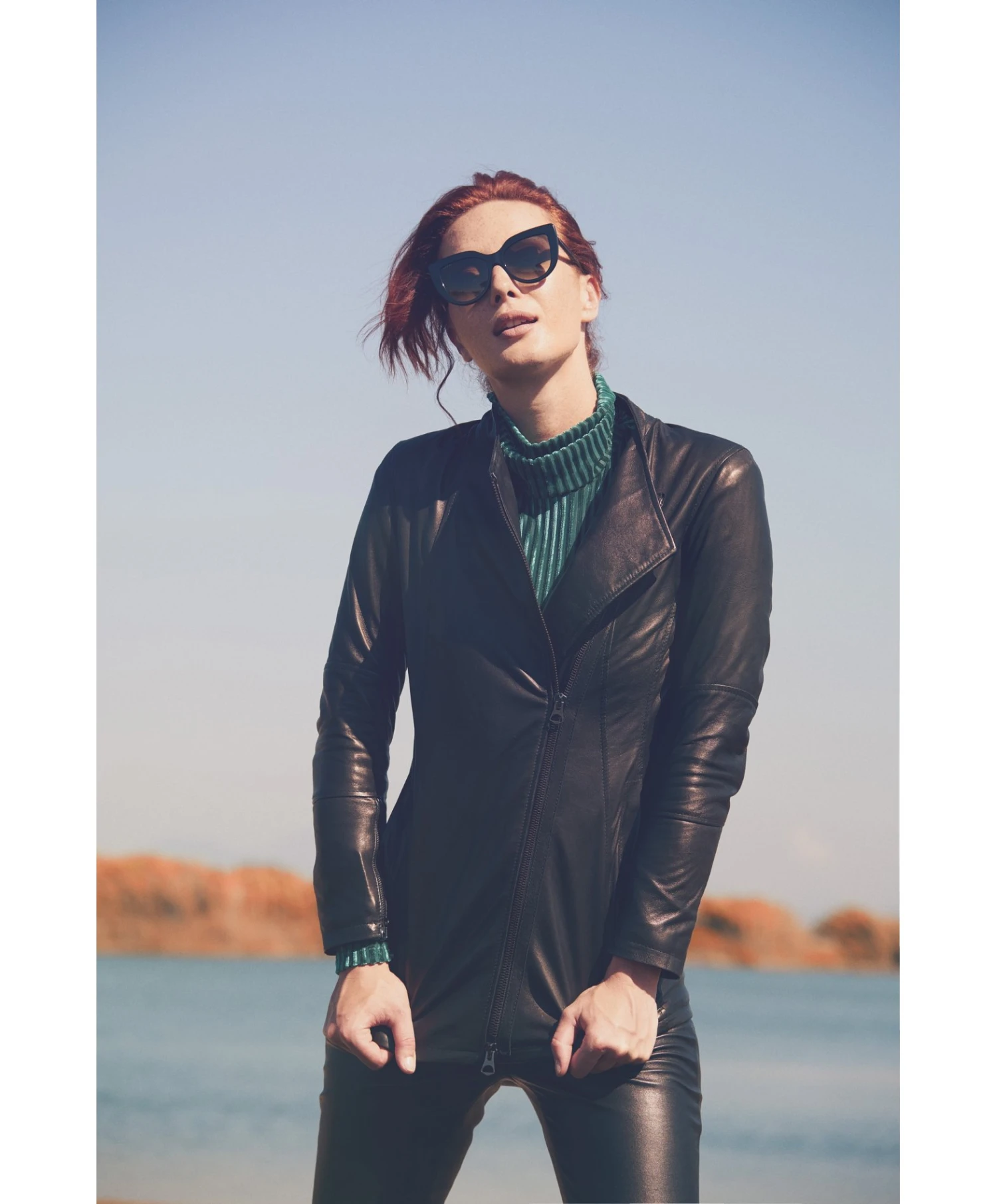 Das vorgeschlagene Modell ‚Jacket Modell Serena‘ aus 100% echtem Bogotà-Leder besteht aus: