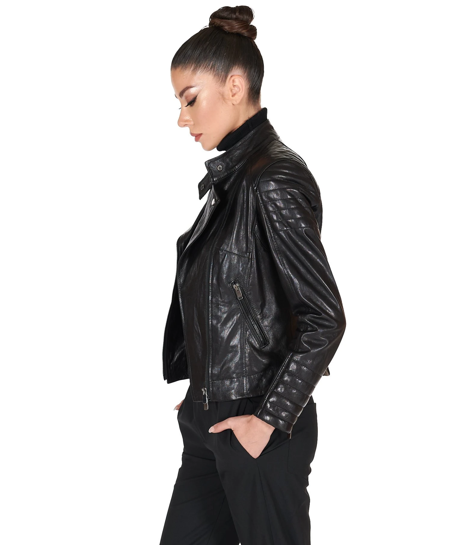 Handgemachte Damenjacke aus Leder, 100% Lammleder, mit ausgewählten Materialien und 100% Made in Italy.