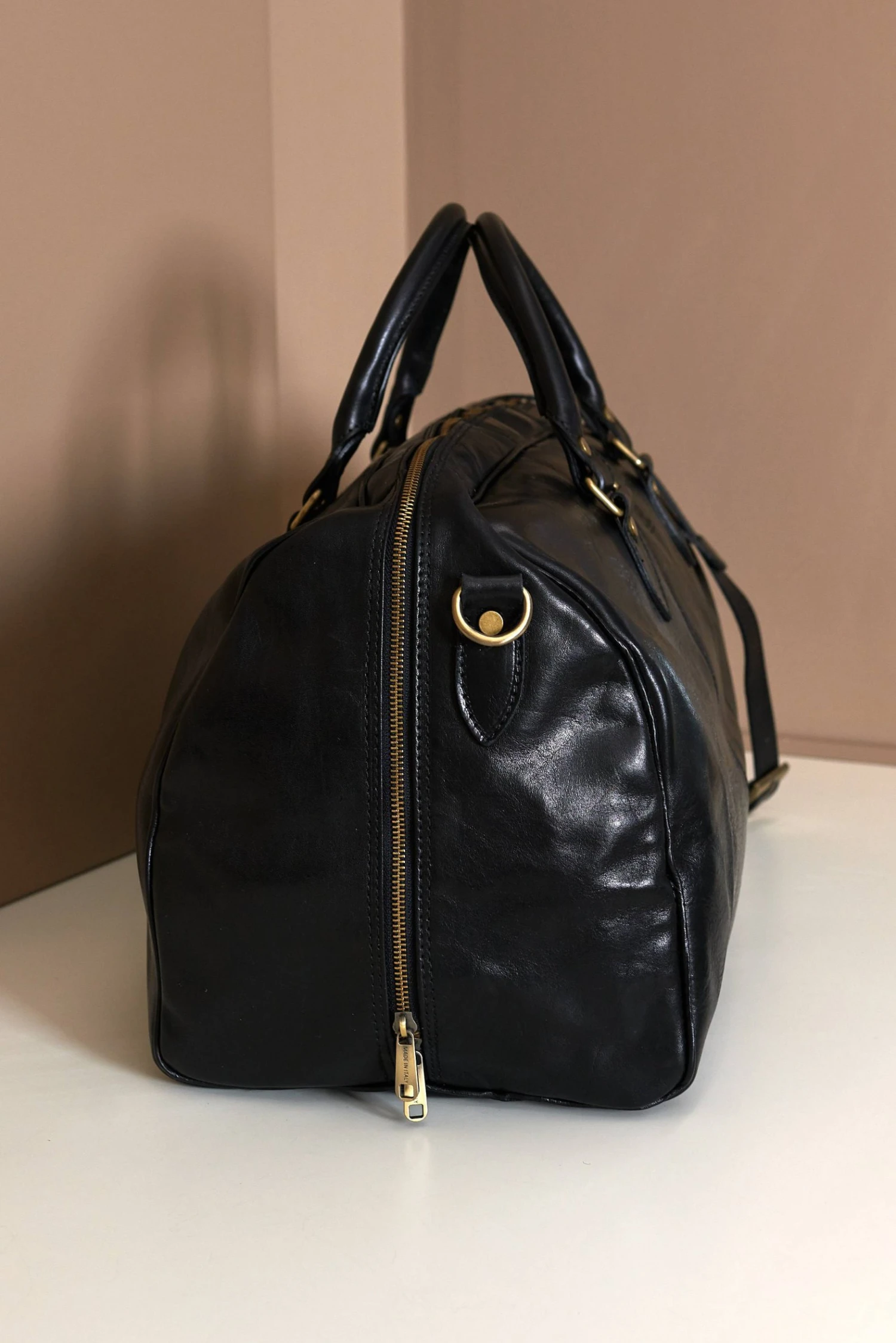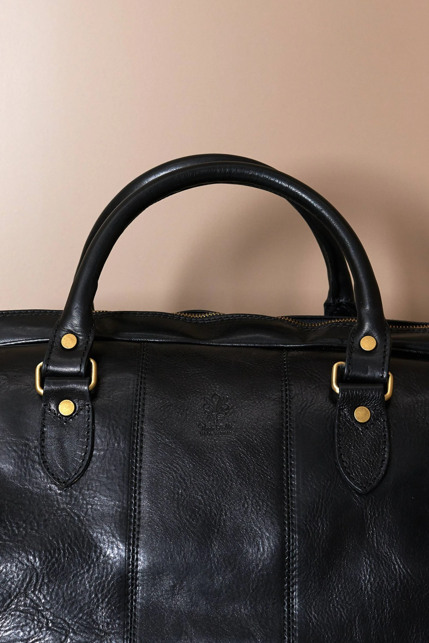 Morris ist eine Reisetasche aus leder, handgepuffertes pflanzlich gegerbtes Kalbsleder, Praxis für Reise und Freizeit.