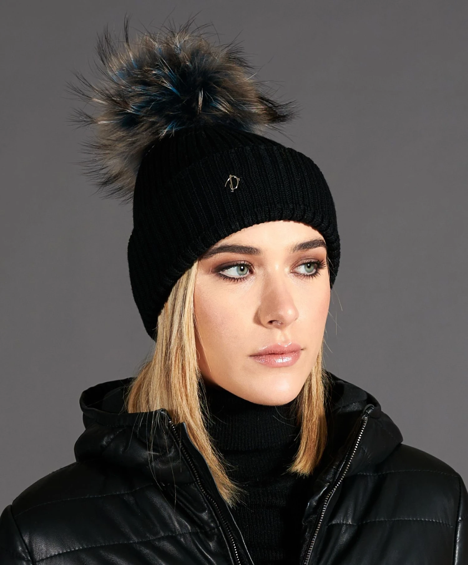 Wollmütze, 100 % Merinowolle, 100 % Fuchspelz.