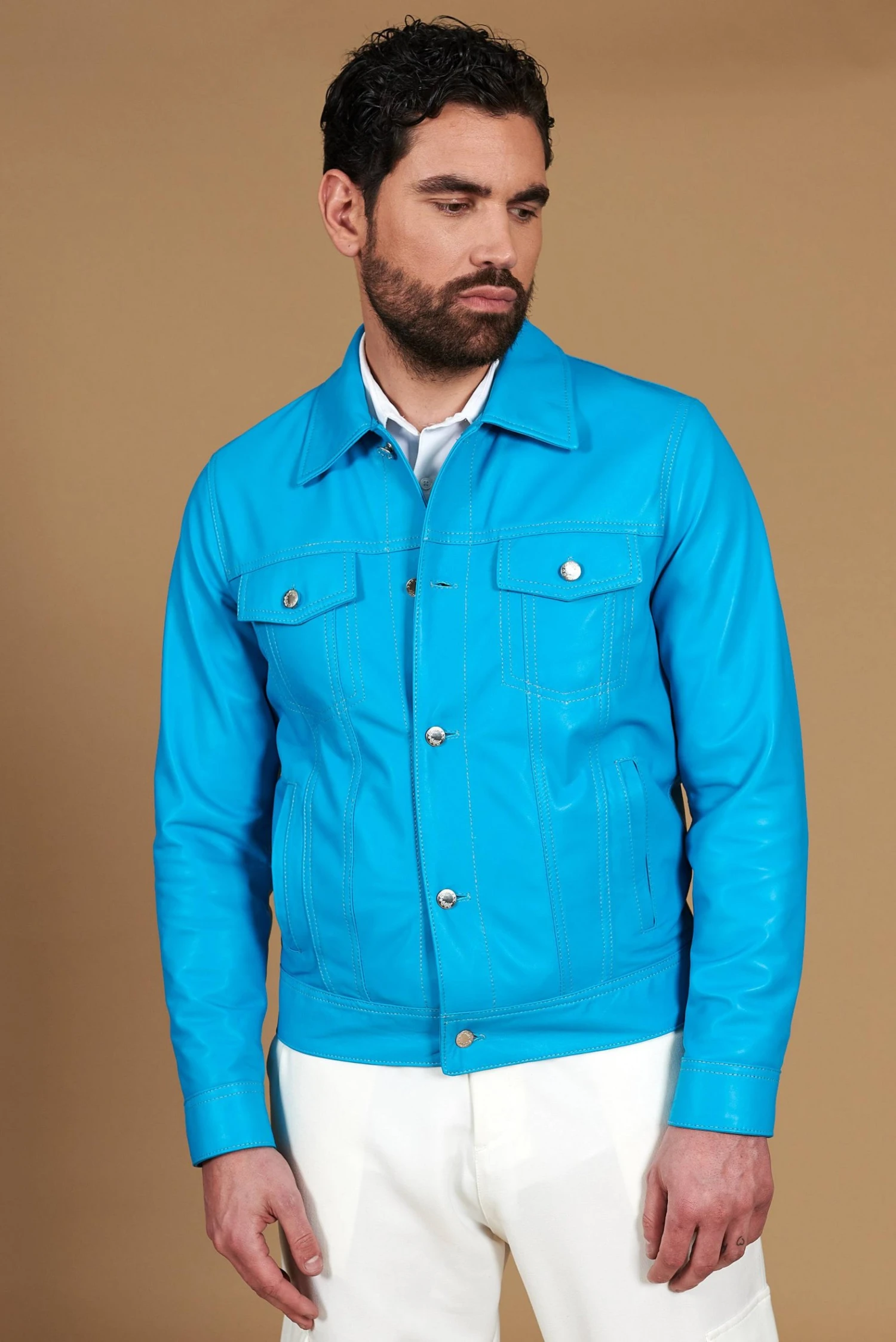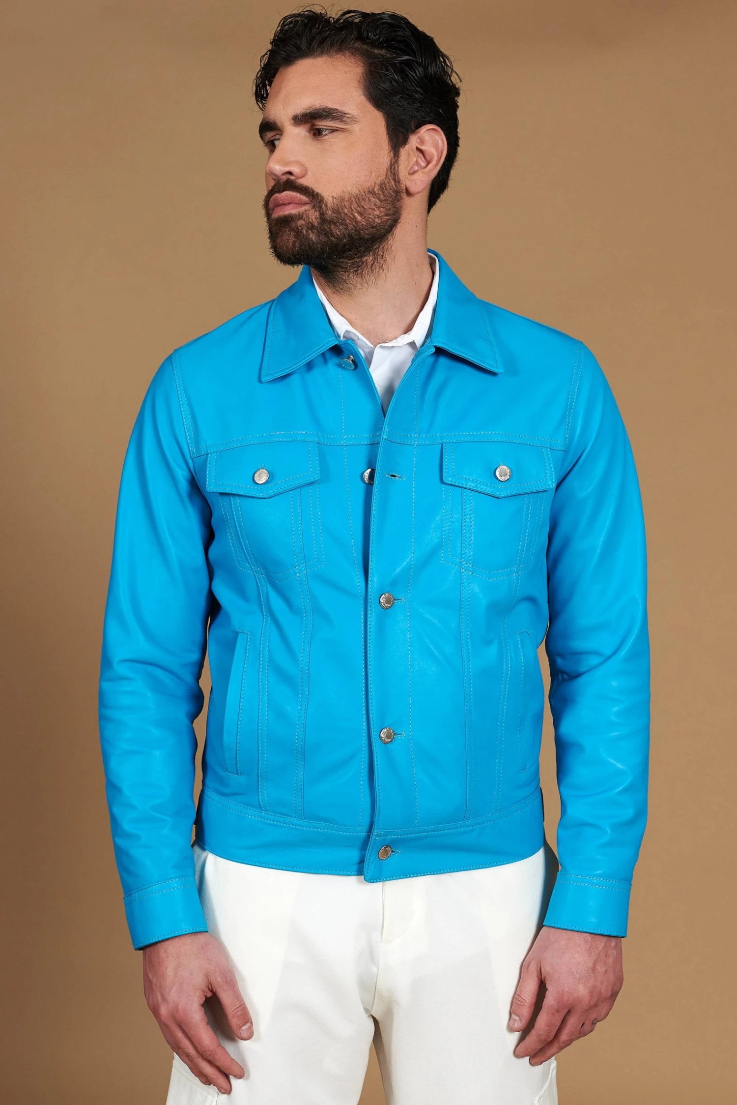 Eine Neuinterpretation der klassischen Jeansjacke, das Modell ‚Akyo‘ ist ein ikonisches Stück, das die Authentizität von echtem Lammleder mit dem zeitlosen Charme des Denim-Stils kombiniert. Handgefertigt in Made in Italy, wurde diese Jacke für diejenigen entworfen, die einen modernen Look suchen, ohne auf die Tradition von hochwertigem Leder zu verzichten.